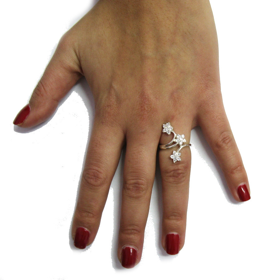как выглядит Stylish Sterling Silver Ring Solid 925 Flower With Cubic Zirconia Handmade фото