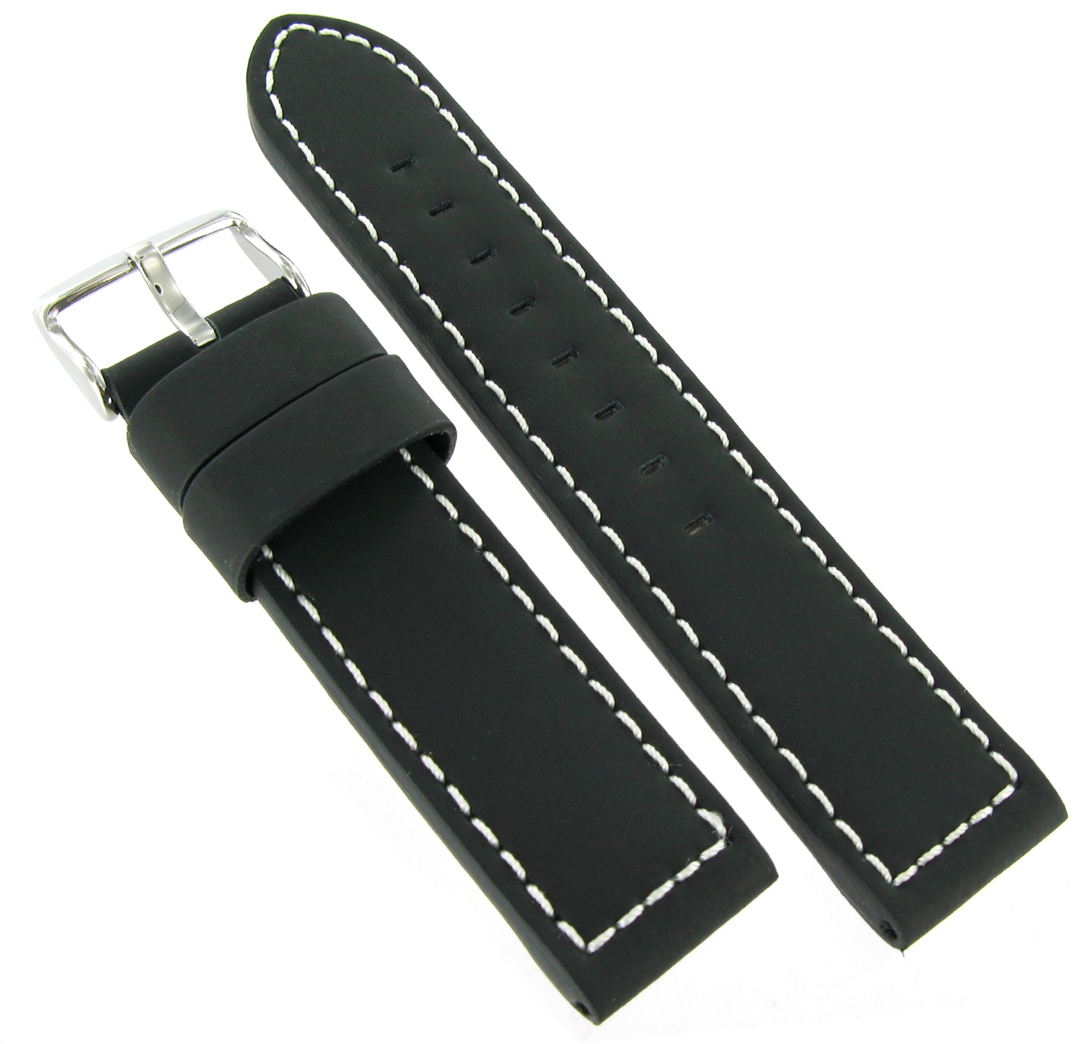как выглядит 18mm Milano Stitched Black Silicone Layered Over Leather Watch Band фото