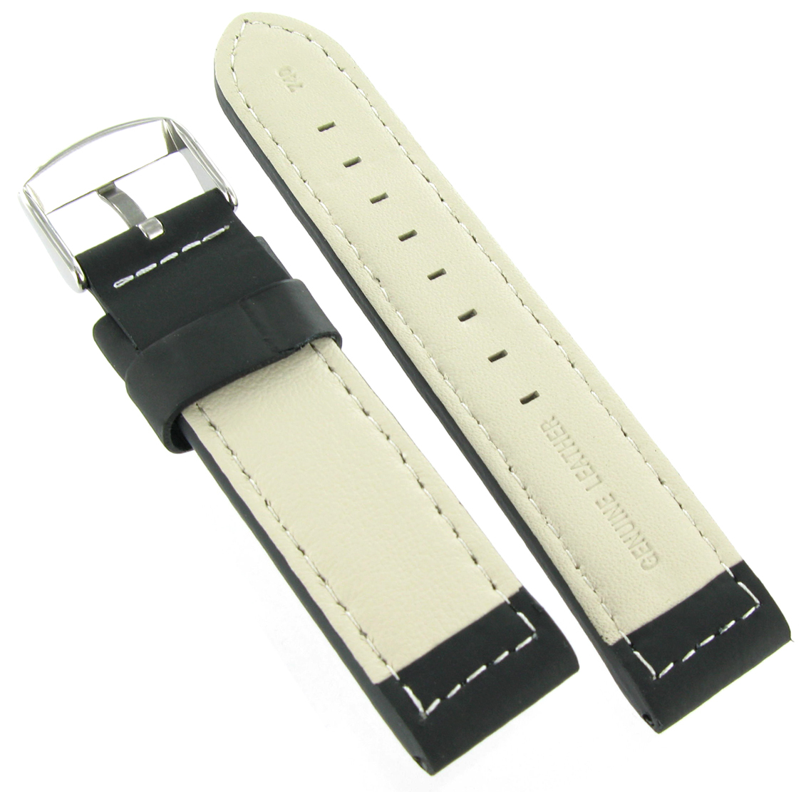 18mm Milano Stitched Black Silicone Layered Over Leather Watch Band