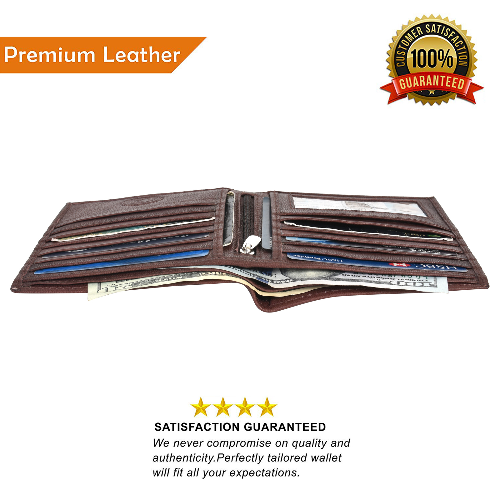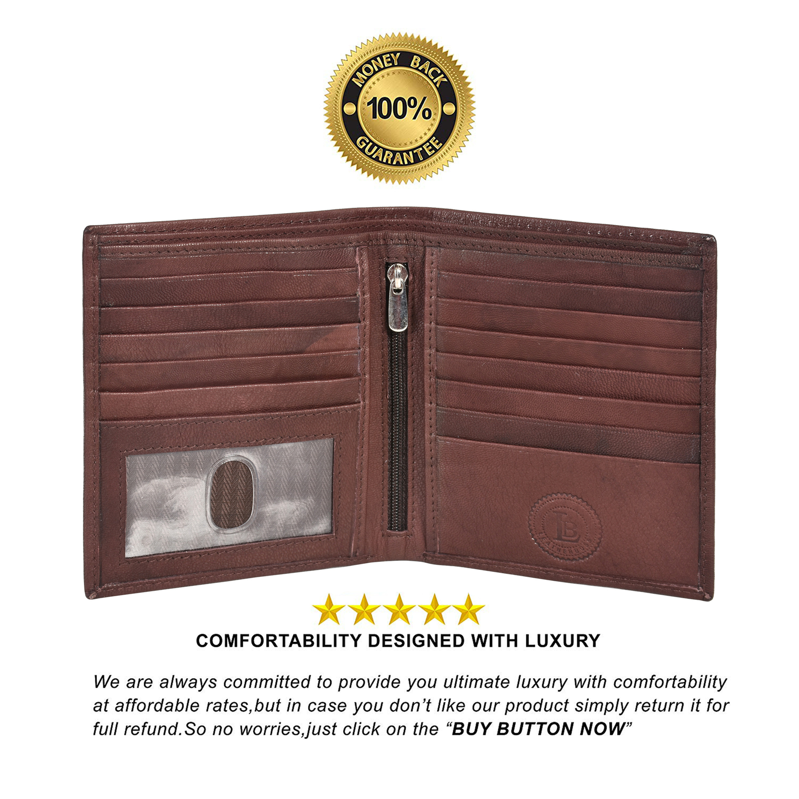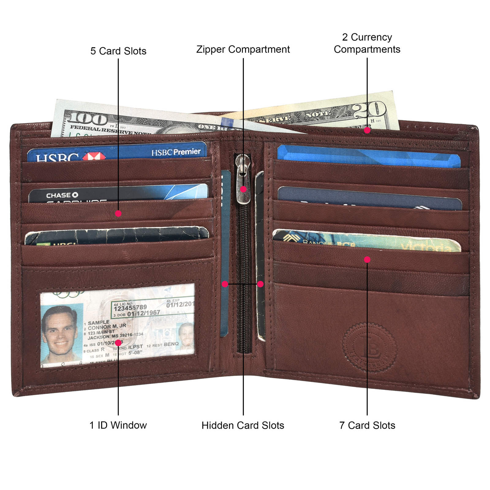 Leatherboss Genuine Leather Hipster 14 Credit Card Slots Wallet , Dark Brown