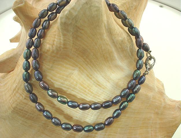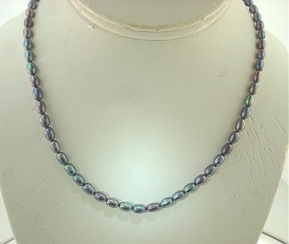 4.5mm One-Strand Cultured Freshwater Peacock Mixed Oval Pearl Necklace SP 16 2