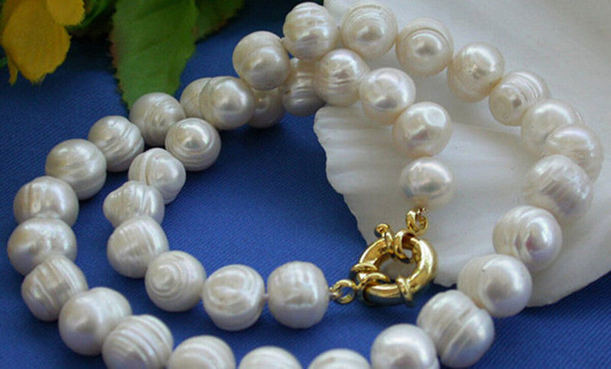 Real 10-11MM Akoya White Natural Freshwater Cultured Pearl Necklace 18