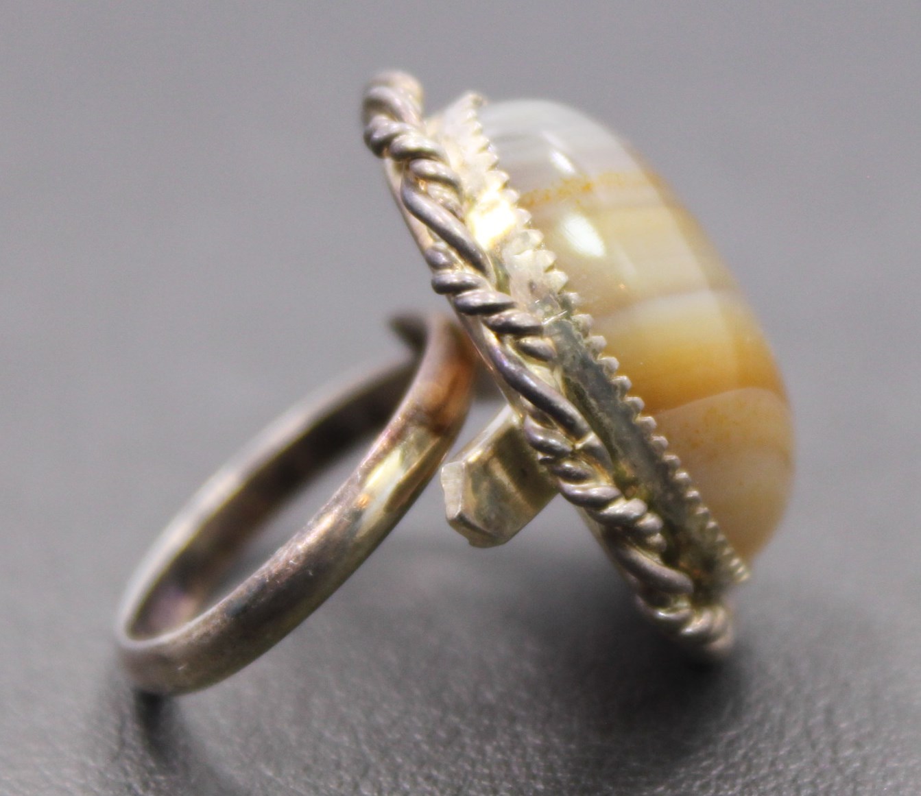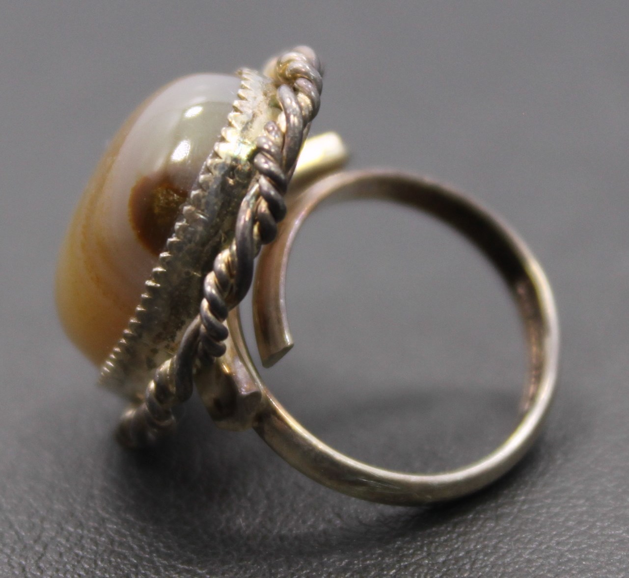 как выглядит Adjustable Sterling Purple Brown White Yellow Agate Stone Ring One Size Fits All фото