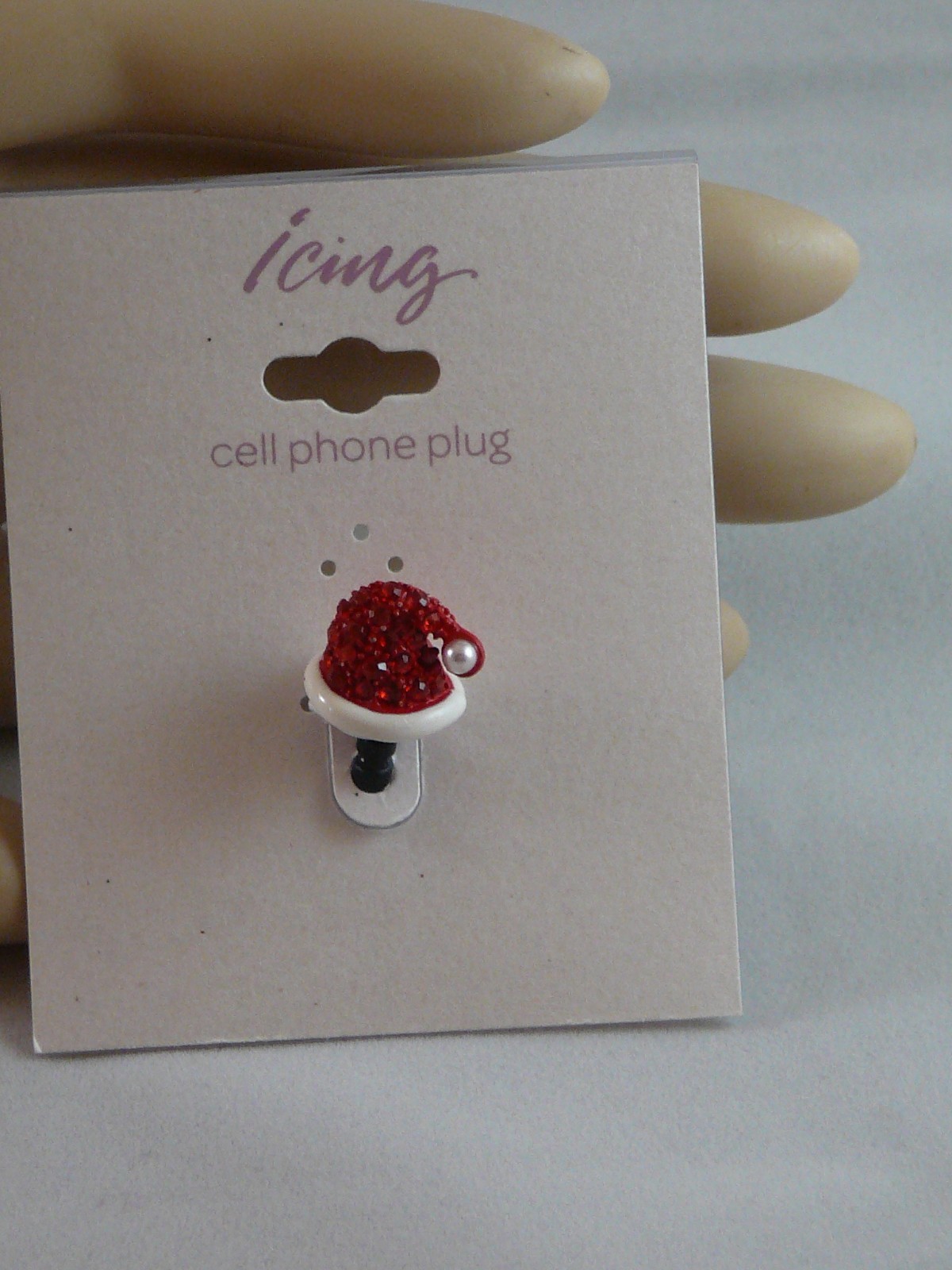 Icing Cell Phone Plug Dust Cover Christmas Red Santa's Hat Iphone USA SELLER