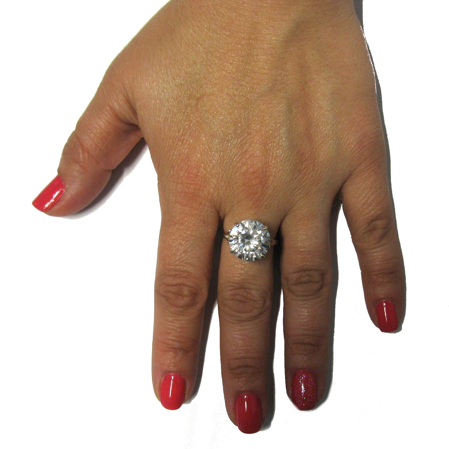 Sterling Silver Ring Genuine Solid 925 With 12mm Round Cubic Zirconia Handmade