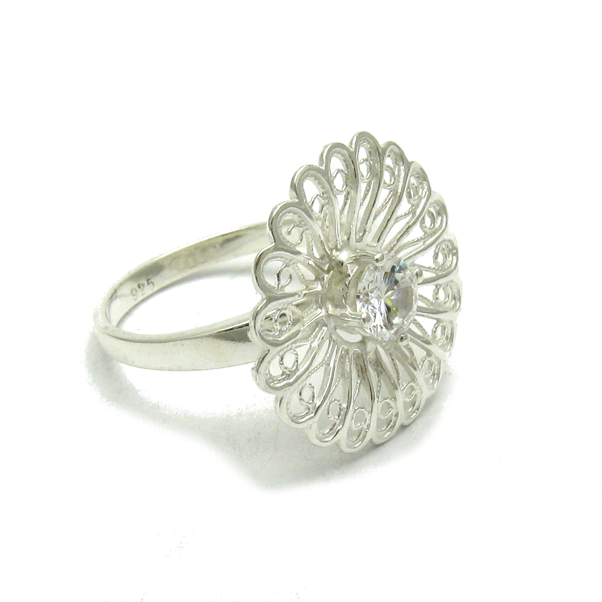 Filigree Sterling Silver Ring Stamped Solid 925 With 5.5mm Round Cubic Zirconia
