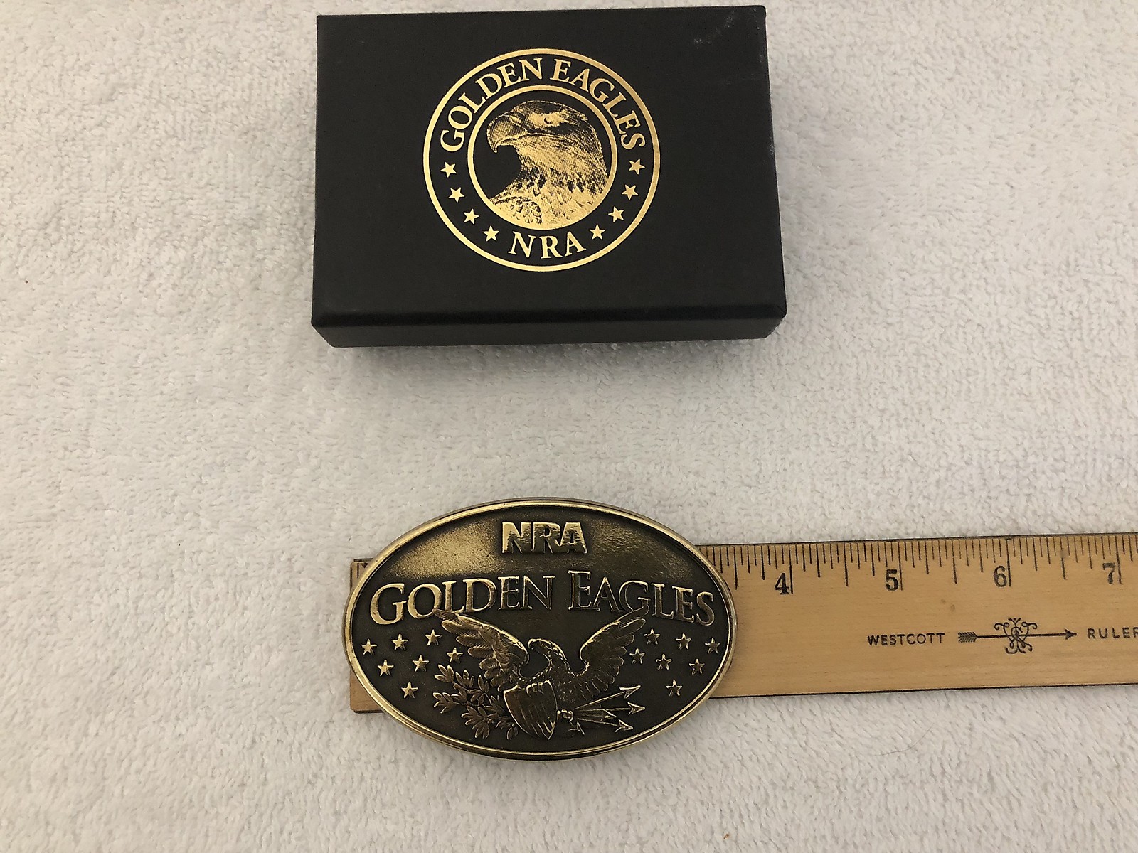 NRA BELT BUCKLE GOLDEN EAGLE MADE IN USA