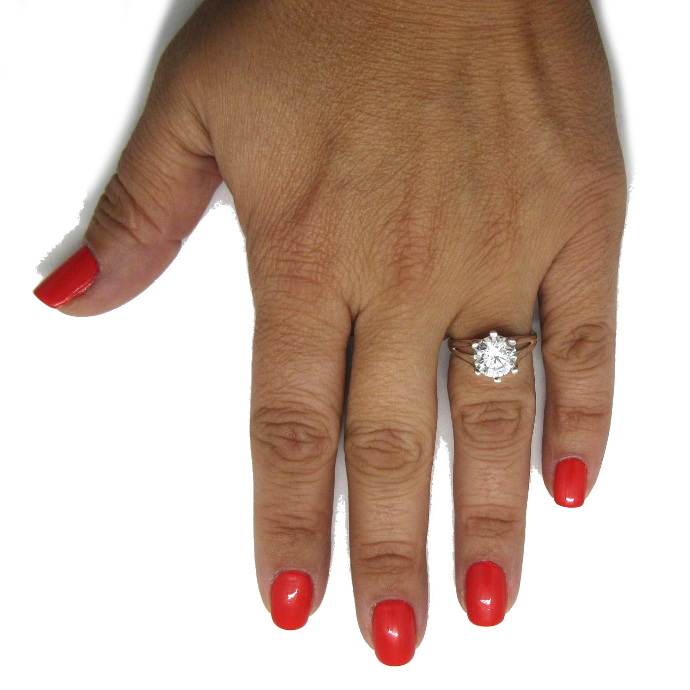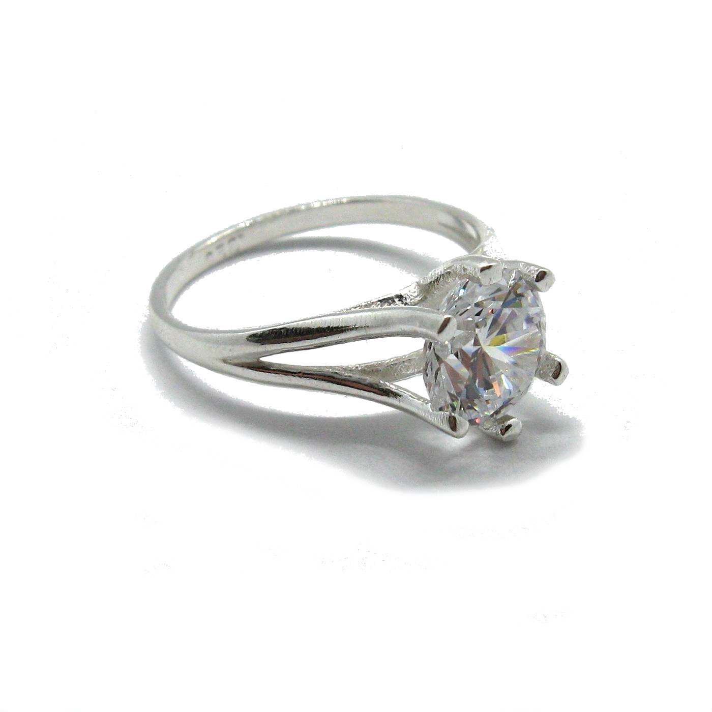 Stylish Sterling Silver Engagement Ring Solid 925 With 9mm Round Cubic Zirconia