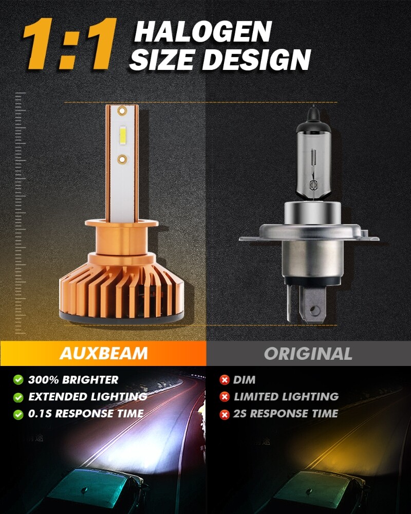 4X AUXBEAM H1 LED Headlights High/Low Beam Combo Bulbs 6500K Replacement HID