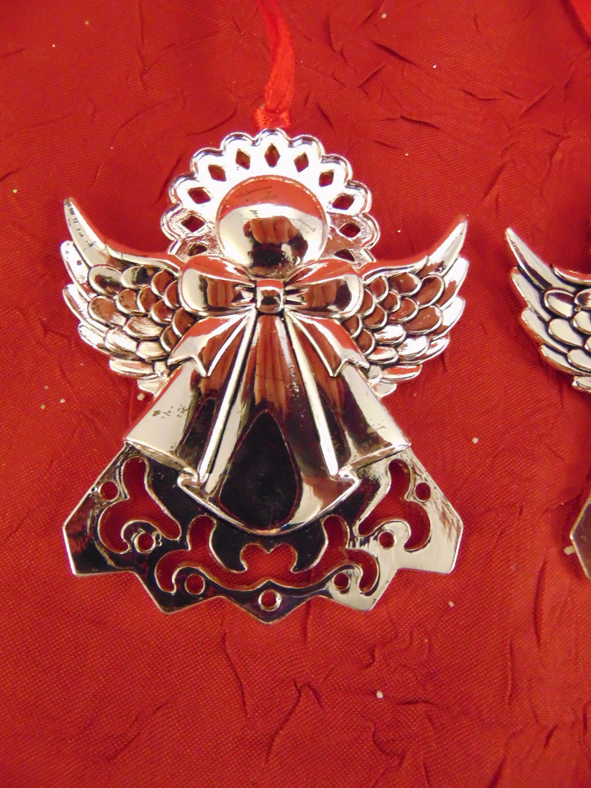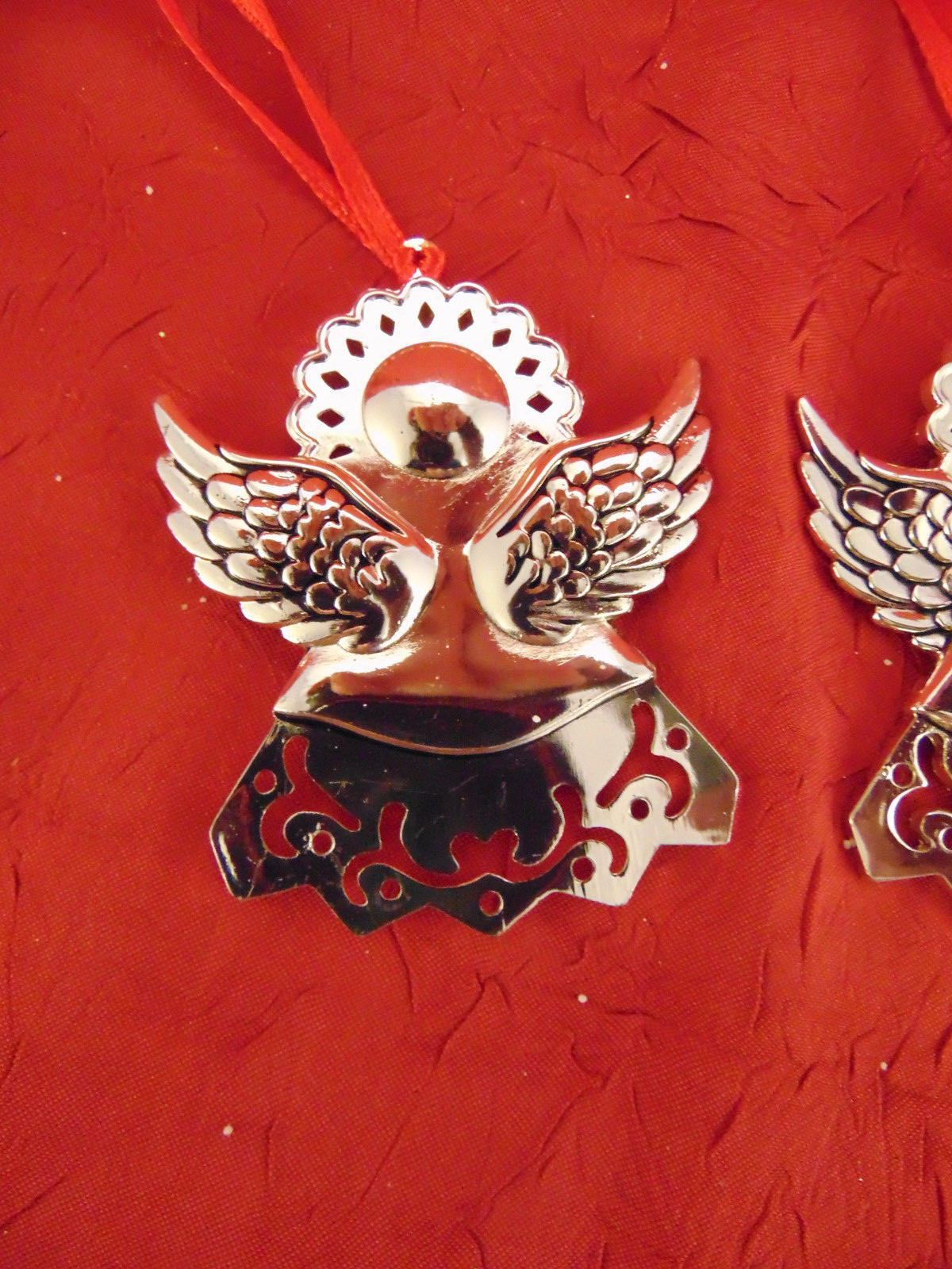 2 Wings Angel Christmas tree ornaments pair metal 2 3/4 holiday twins decor art
