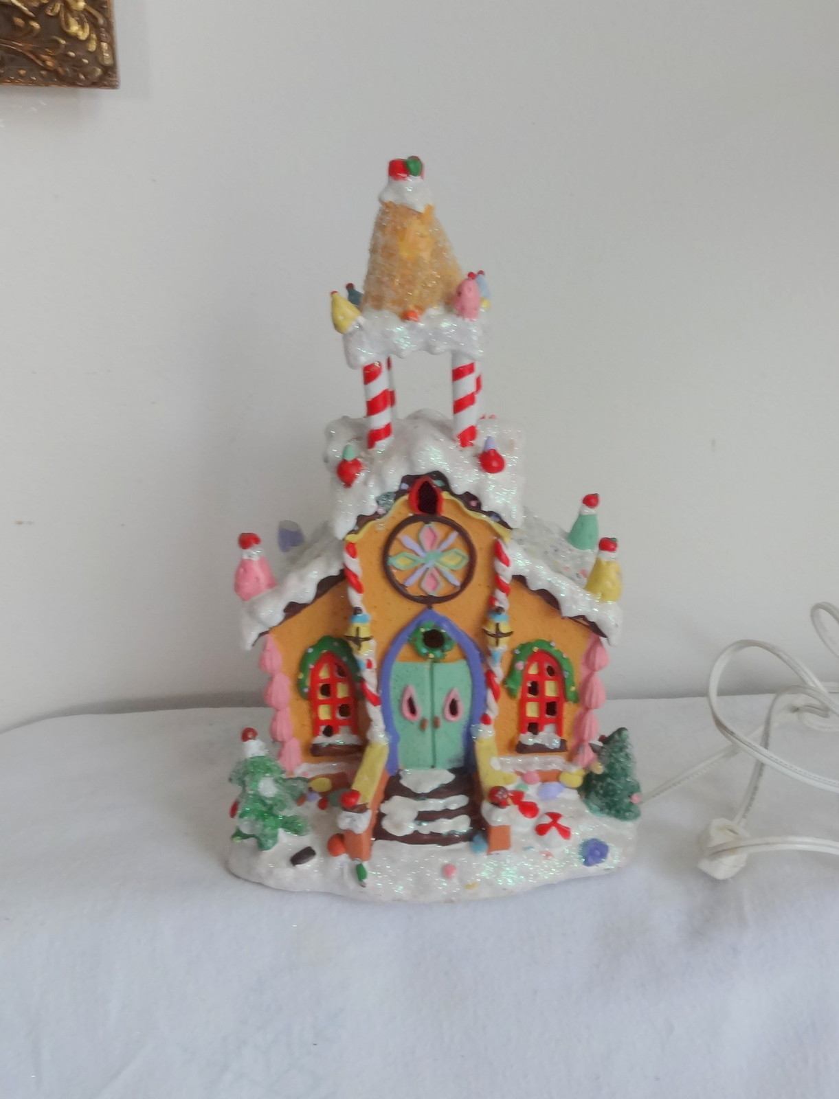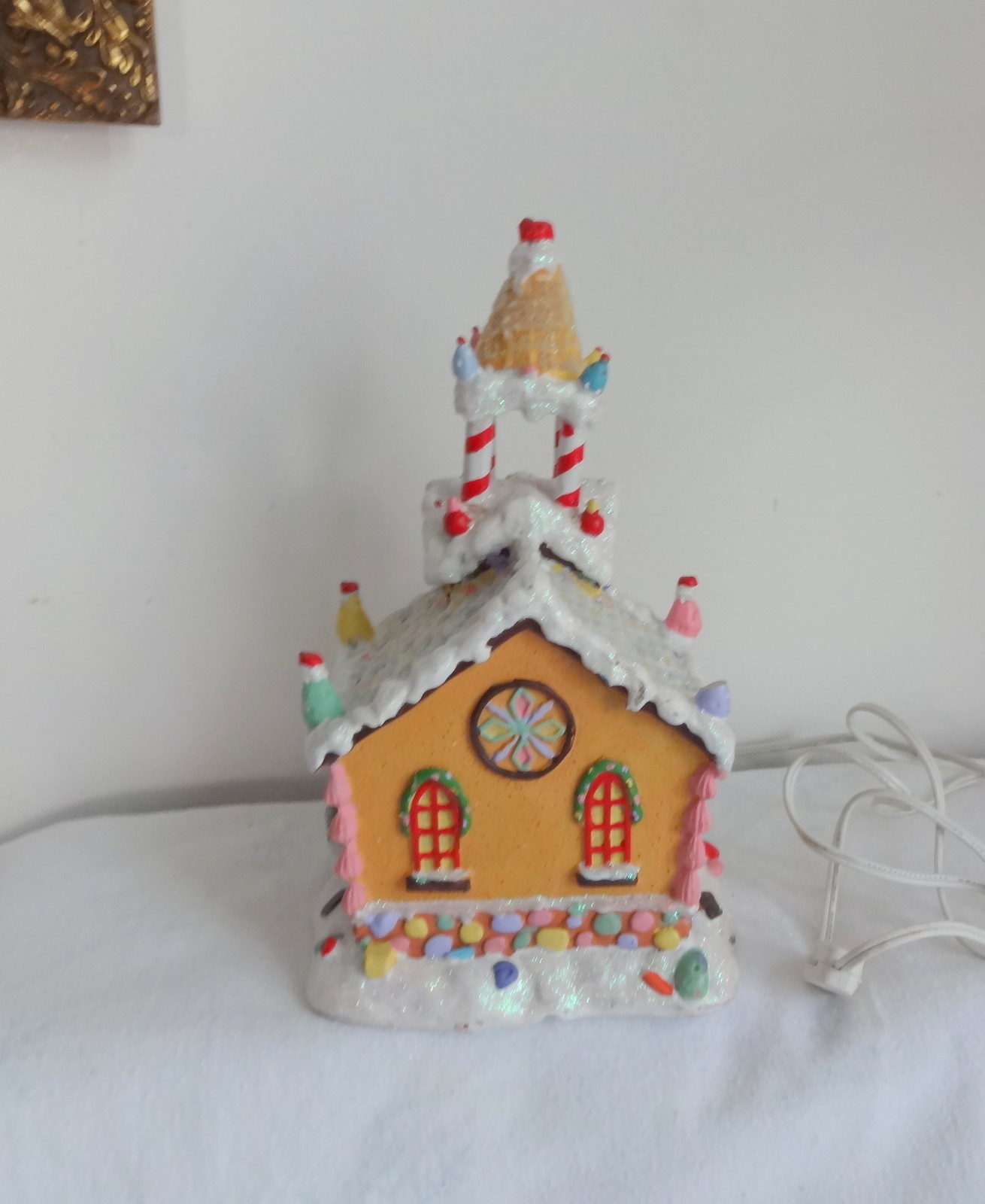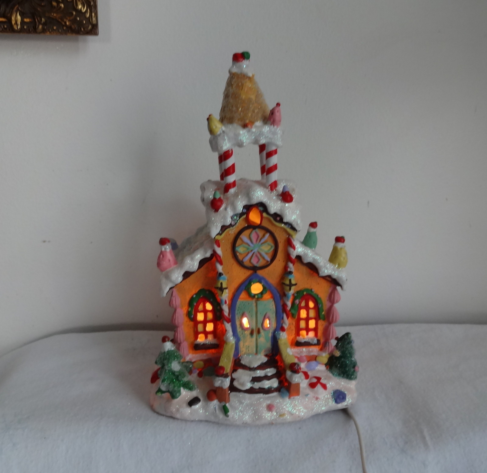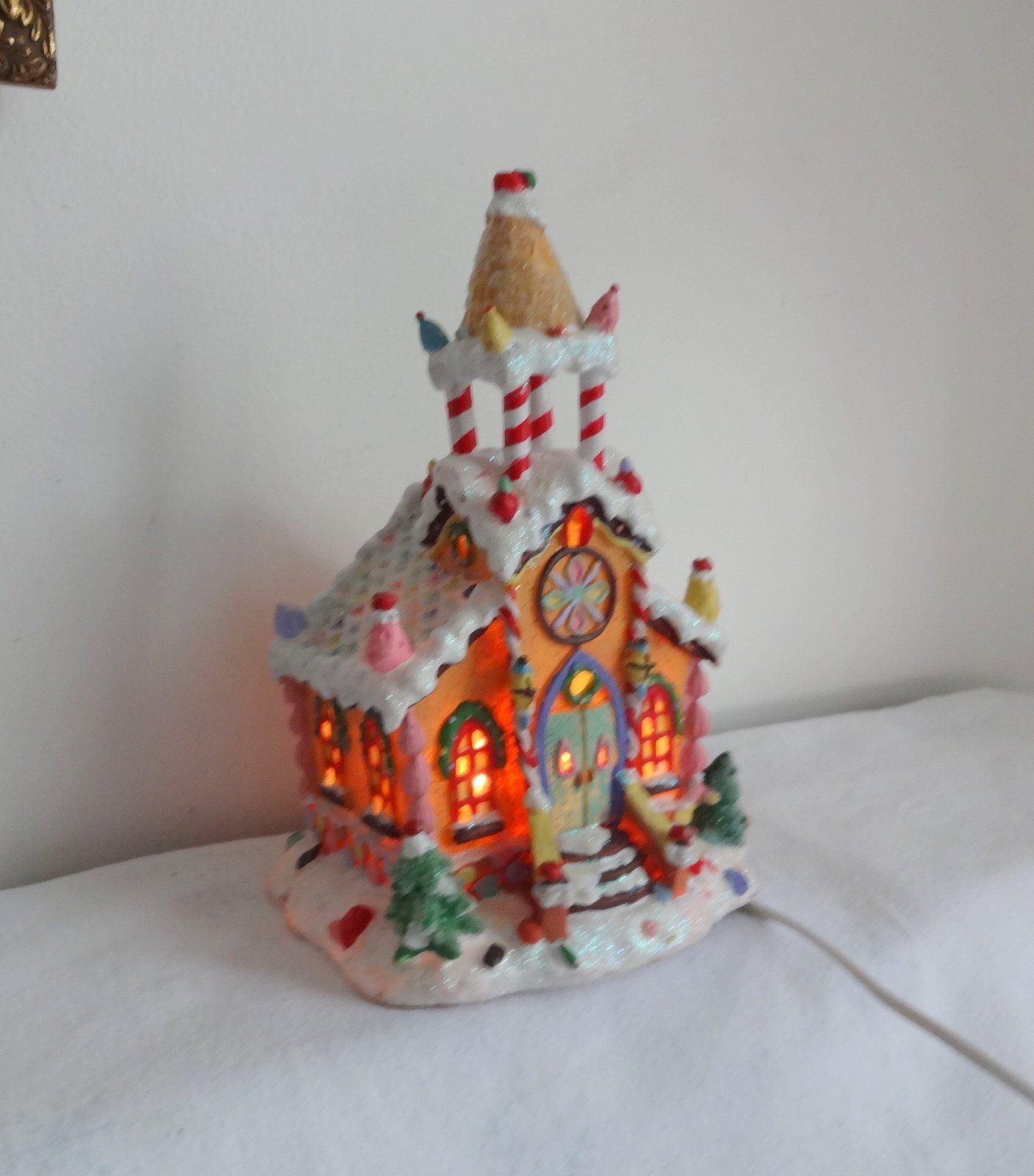 Vtg Lighted Christmas Village Gingerbread House Cookie Candy Country Church RARE