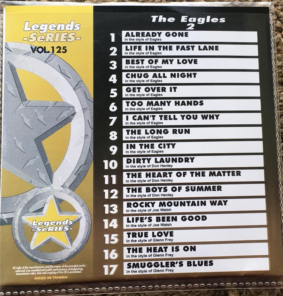 LEGENDS KARAOKE CDG EAGLES VOL 2 ROCK OLDIES 125 17 SONGS LIFE IN THE FAST LANE