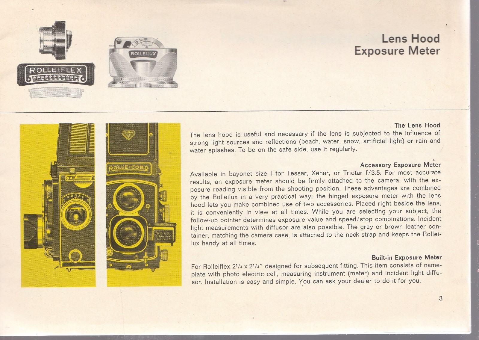 ROLLEIFLEX THE PRACTICAL ACCESSORIES MANUAL E 0363 1960'S