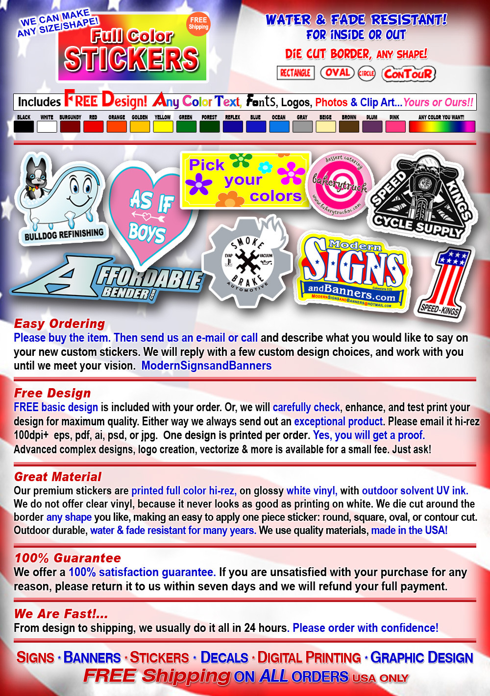 40 3x5 Custom Printed Full Color Outdoor Vinyl Car Bumper Sticker Decal Die Cut
