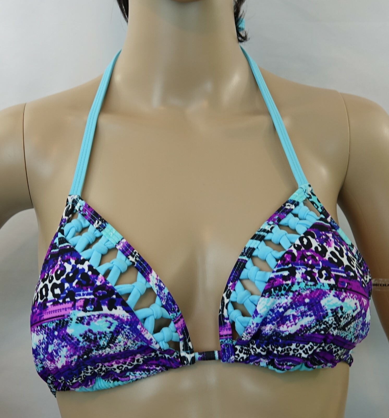 O'RAGEOUS blue/purple animal print knot detail halter top cage side bottom, M