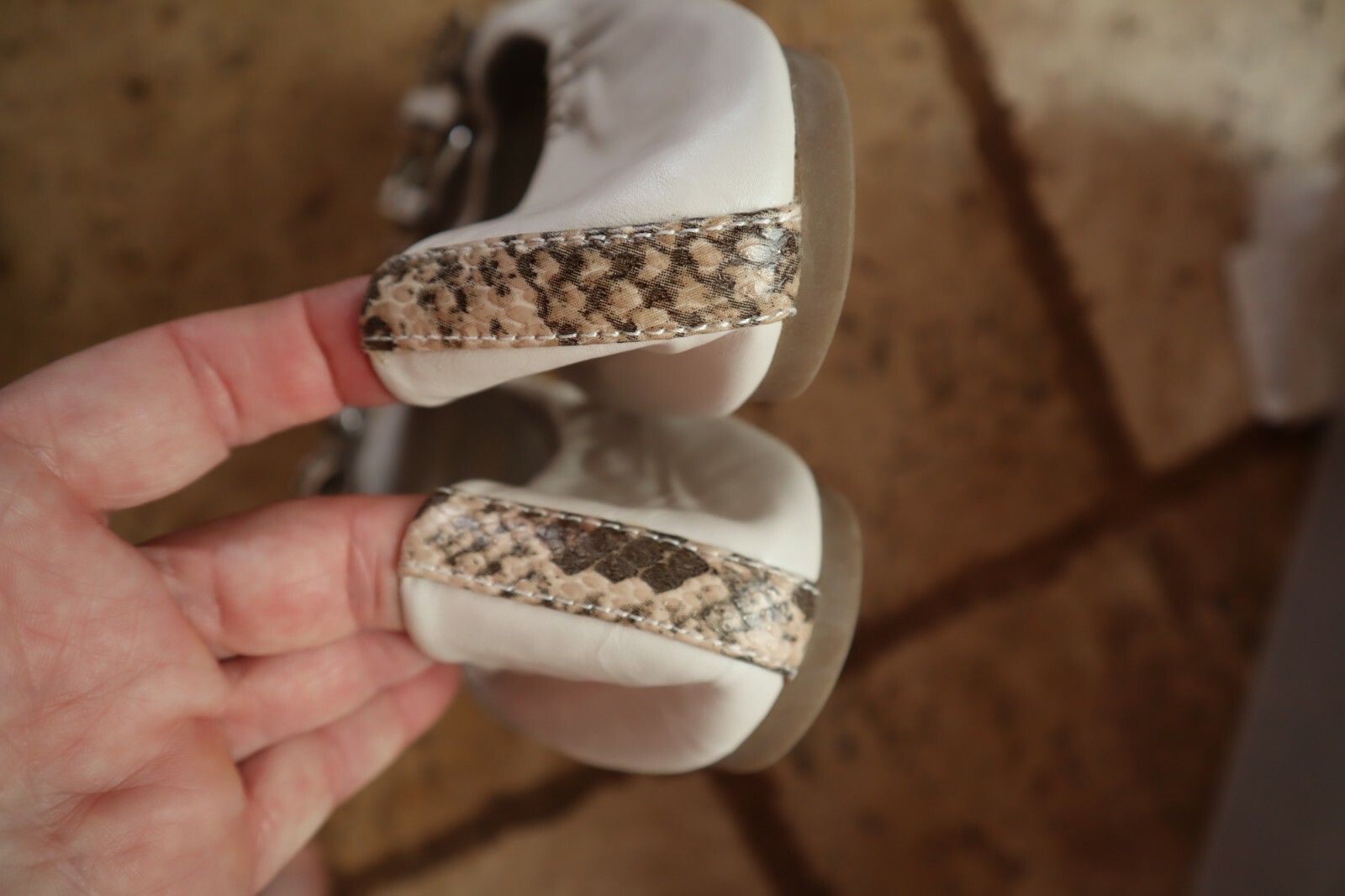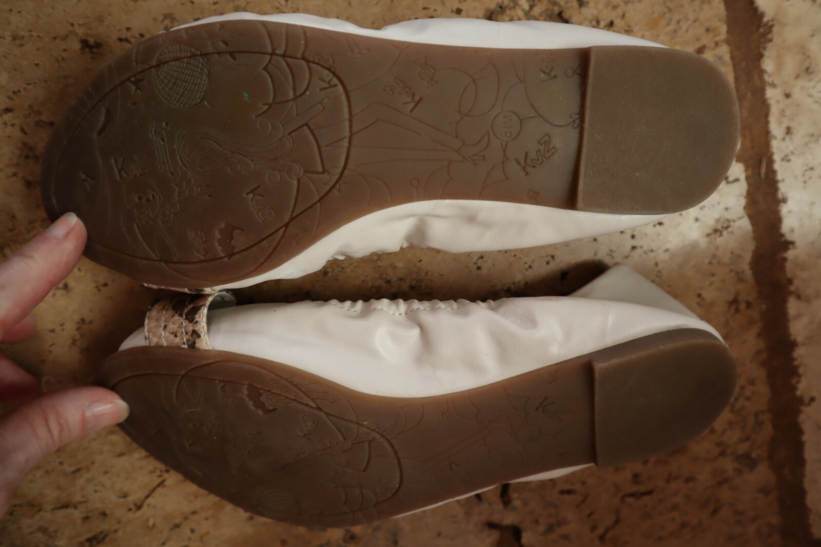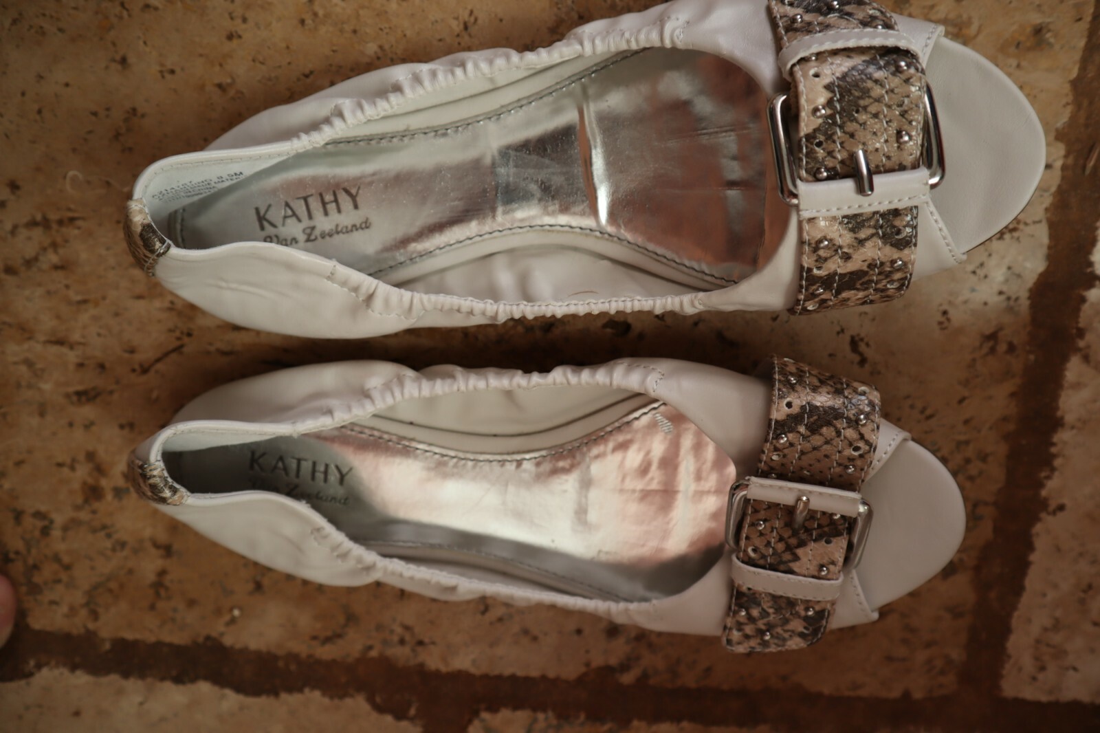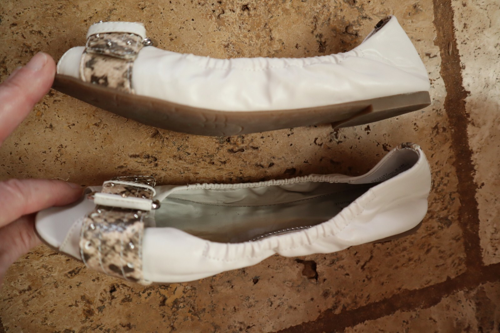 как выглядит White CATHY VAN ZEELAND Harding Elasticized Peep Toe Flats w/Snake Strap 8.5 M фото