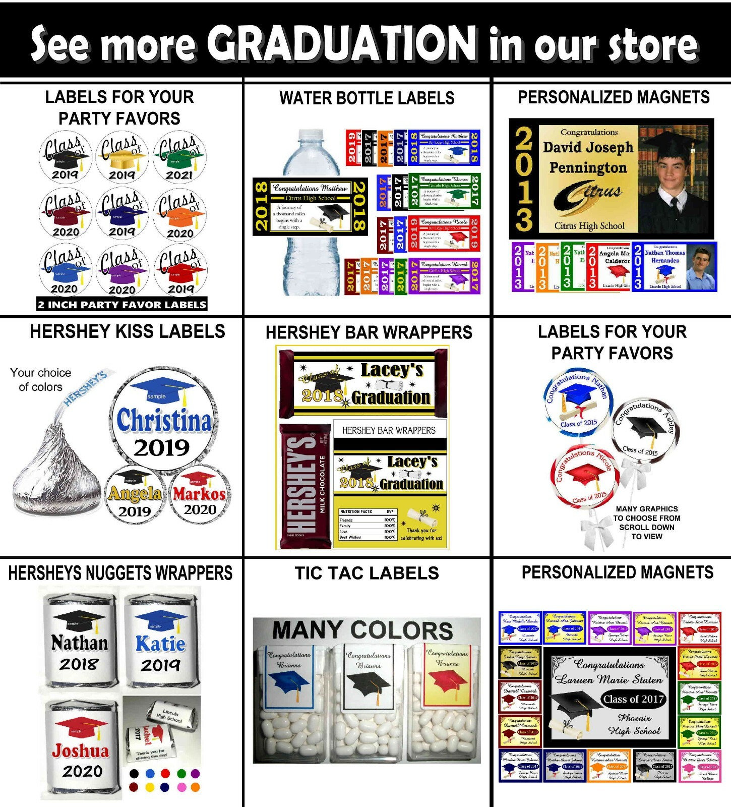 30 GRADUATION CANDY WRAPPERS PARTY FAVORS PERSONALIZED MANY COLORS