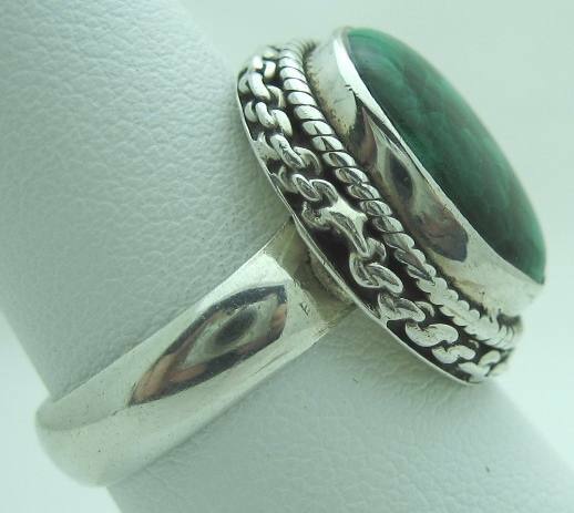 как выглядит LOVELY SOUTHWESTERN ESTATE HANDCRAFTED MALACHITE STERLING SILVER RING, SIZE 8 фото