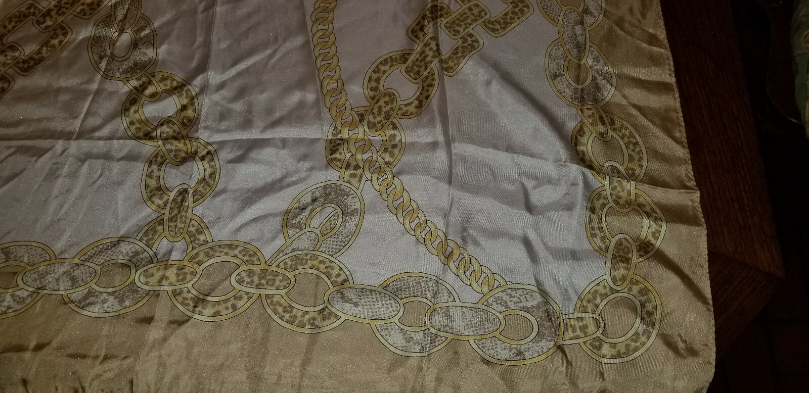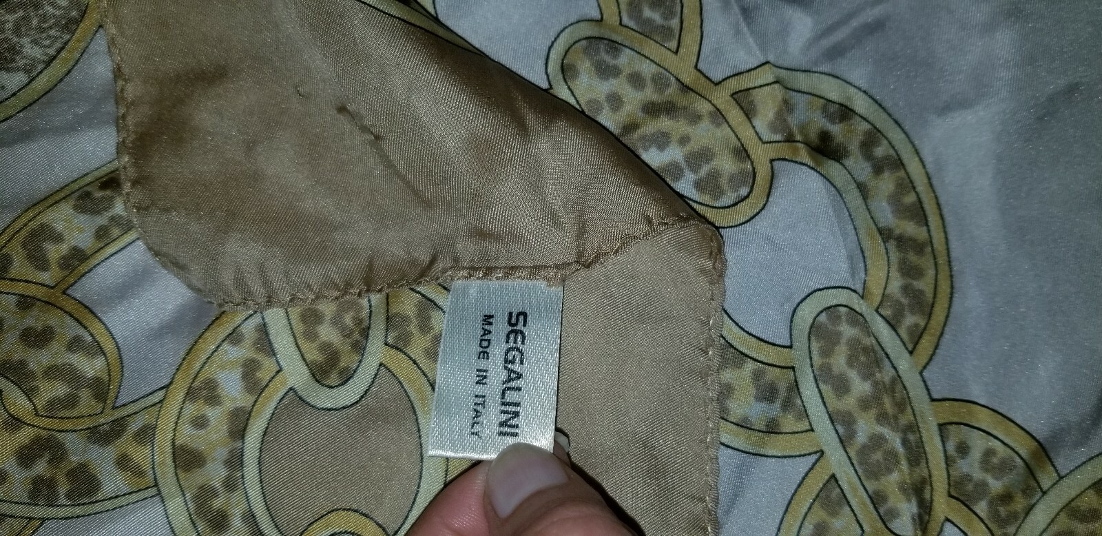 как выглядит VINTAGE SEGALINI ITALY SILK SCARF 34" X 34" GOLD LINKS W/ LEOPARD PRINT фото