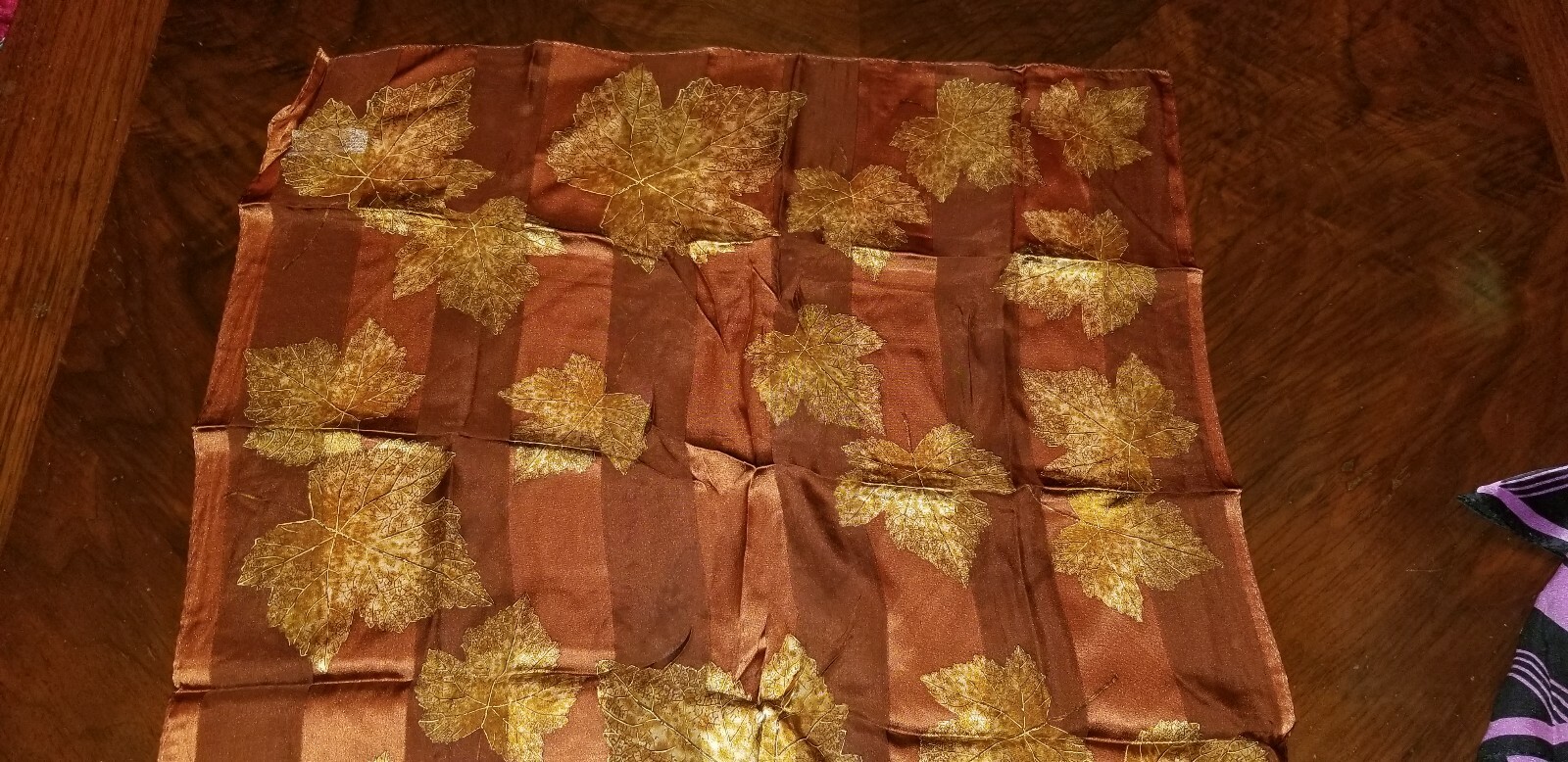 как выглядит VINTAGE ELAINE GOLD COLLECTION XIIX LTD SILK SCARF GOLD LEAF MOTIF 21" X 21" фото