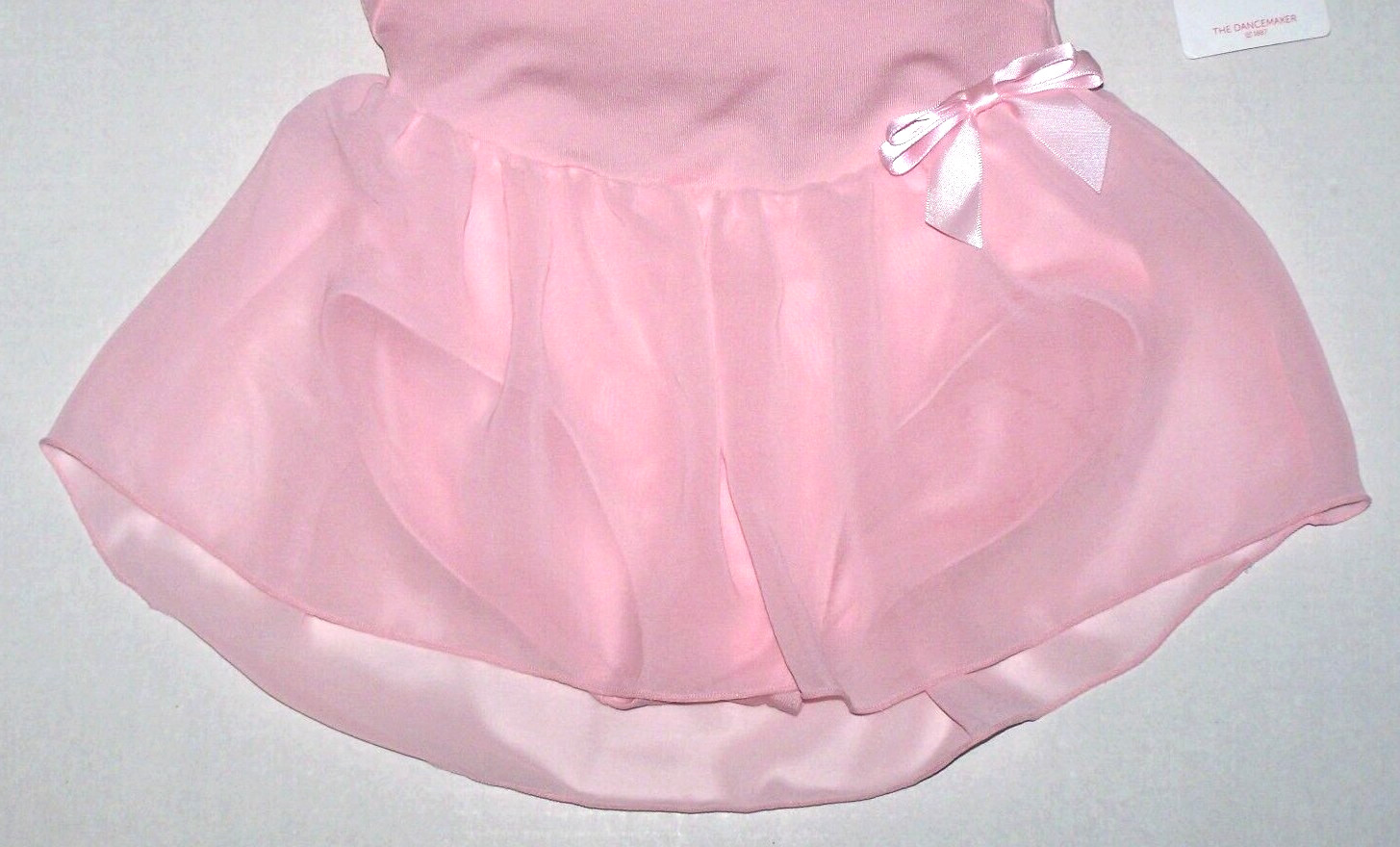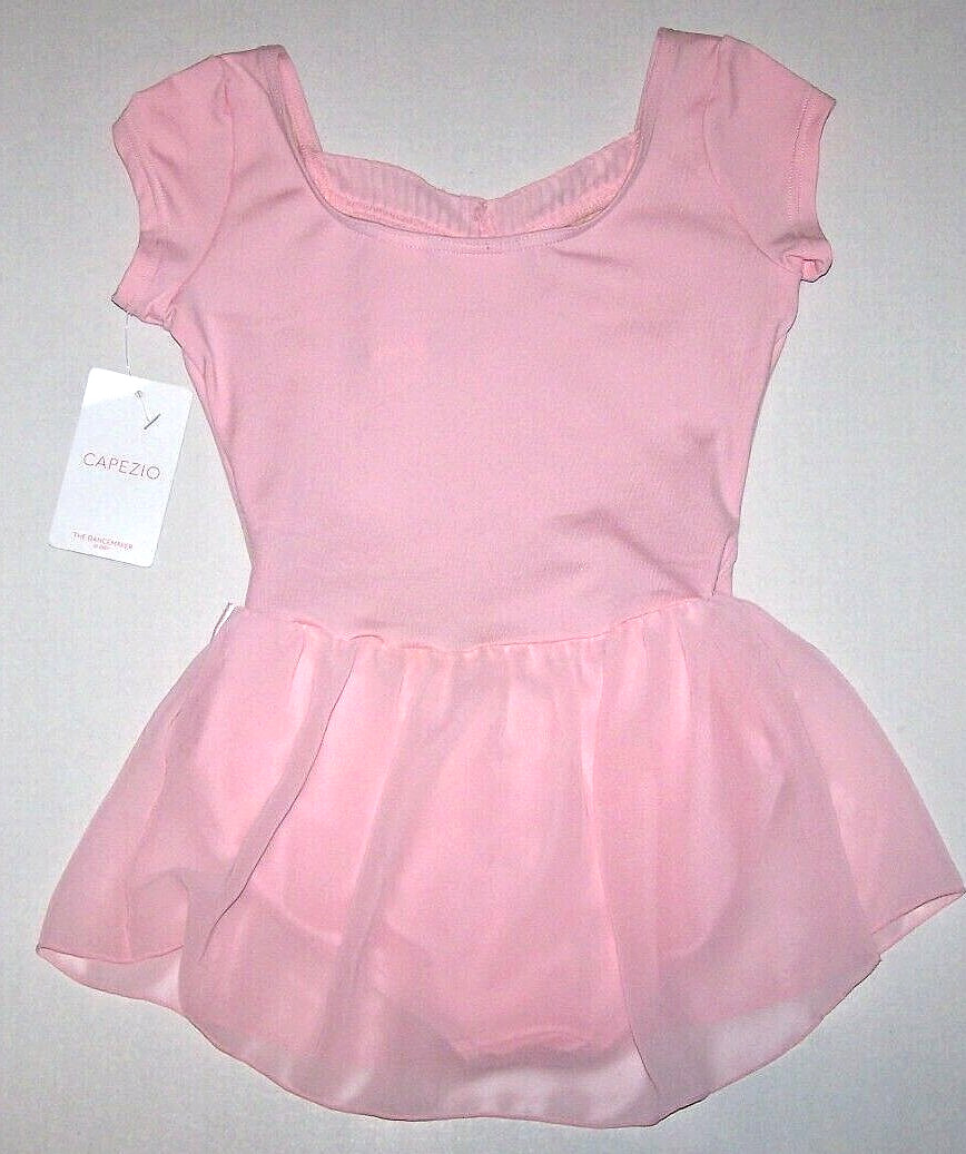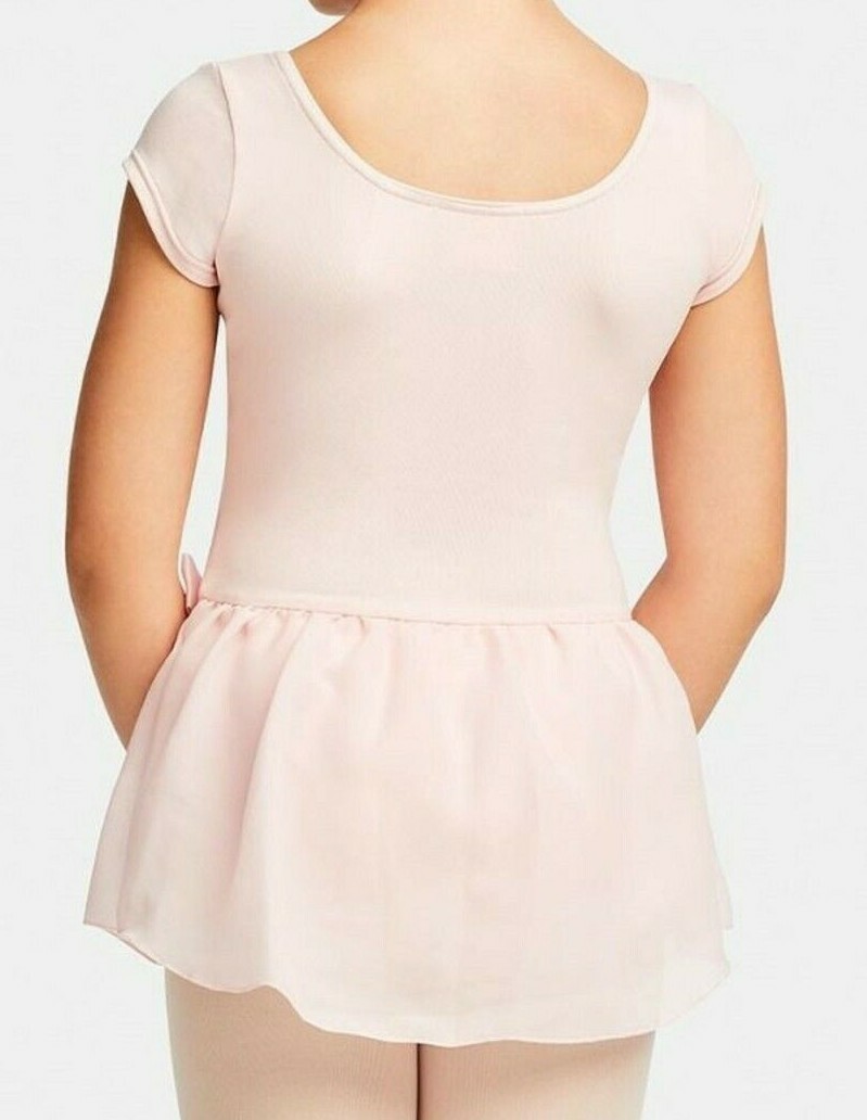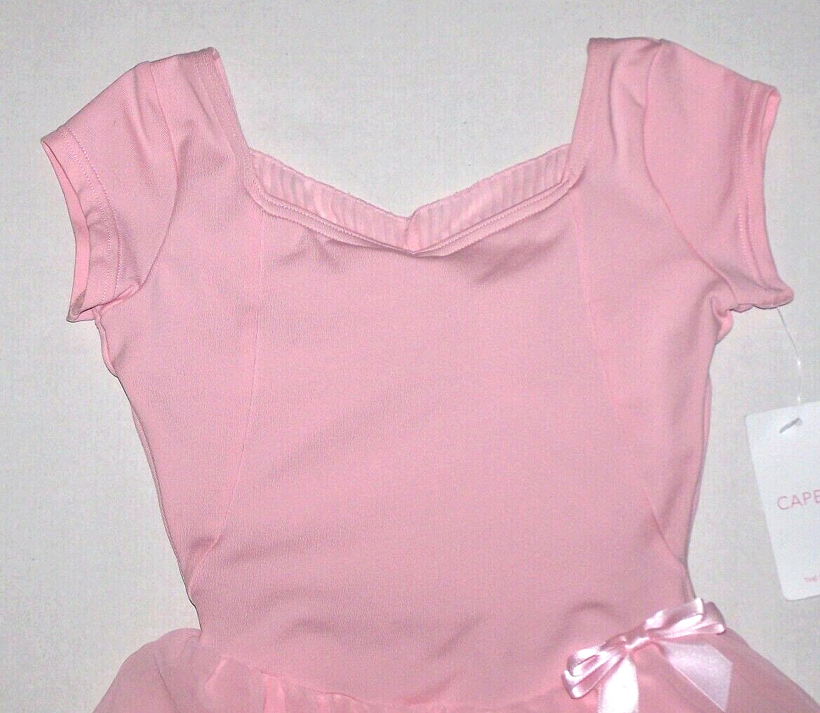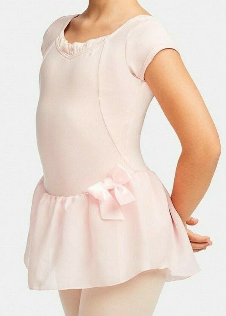 Capezio Cap Sleeve Dress Leotard Bodysuit Sheer Skirt Satin Bow New Girl L 7 8