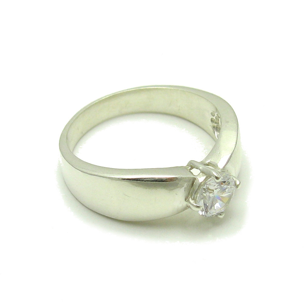 Plain Sterling Silver Ring Solid 925 With 6mm Cubic Zirconia Nickel Free Empress