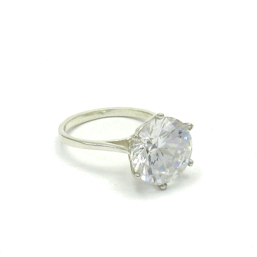 Sterling Silver Ring Solid 925 With 12mm Cubic Zirconia Nickel Free Empress