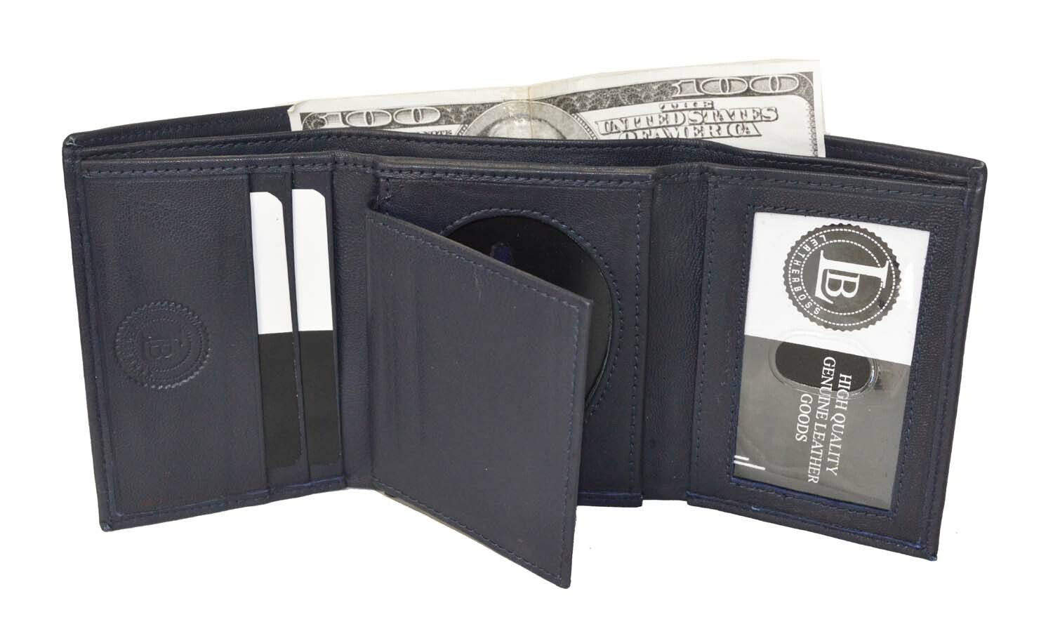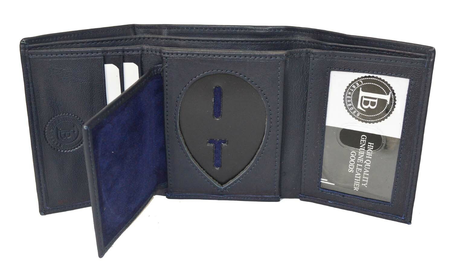 LEATHER BADGE ID HOLDER 'SHIELD' SHAPE TRIFOLD WALLET NEW NAVY BLUE RARE WALLET