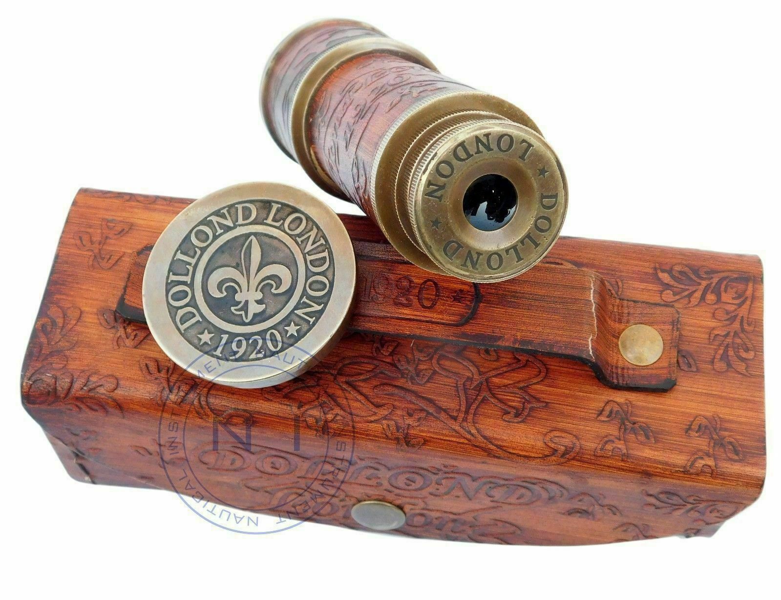 как выглядит Antique-Brass-Telescope-Marine-Nautical-Leather-Pirate-Spyglass-Vintage-Scope фото