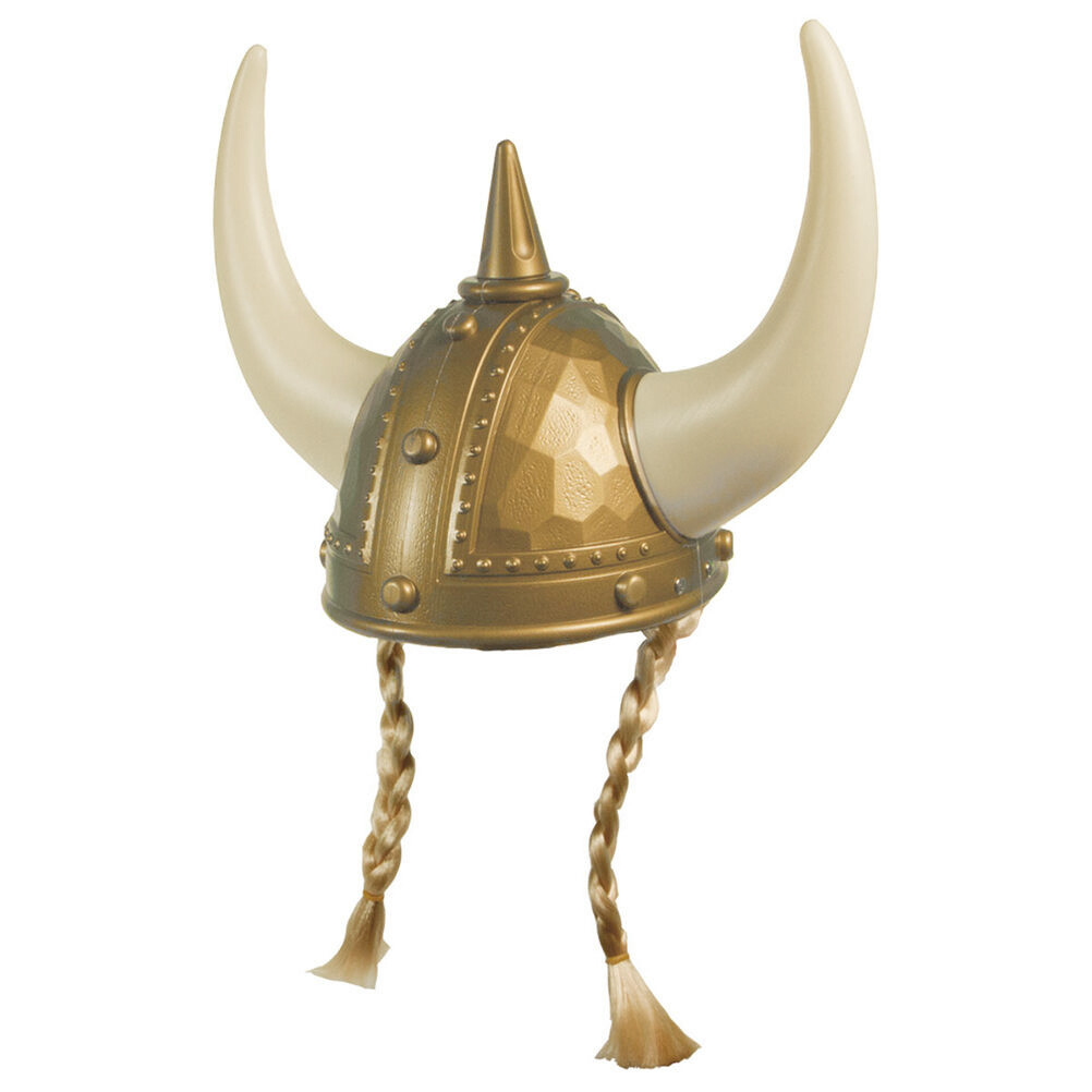 Adult Plastic Gold Norse Viking Helmet With Blonde Braids