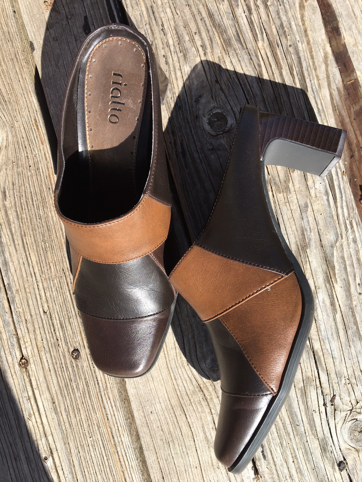 Rialto Hoody Brown Faux Leather Slip On Shoes Heels Square Toe 9.5 M Women s