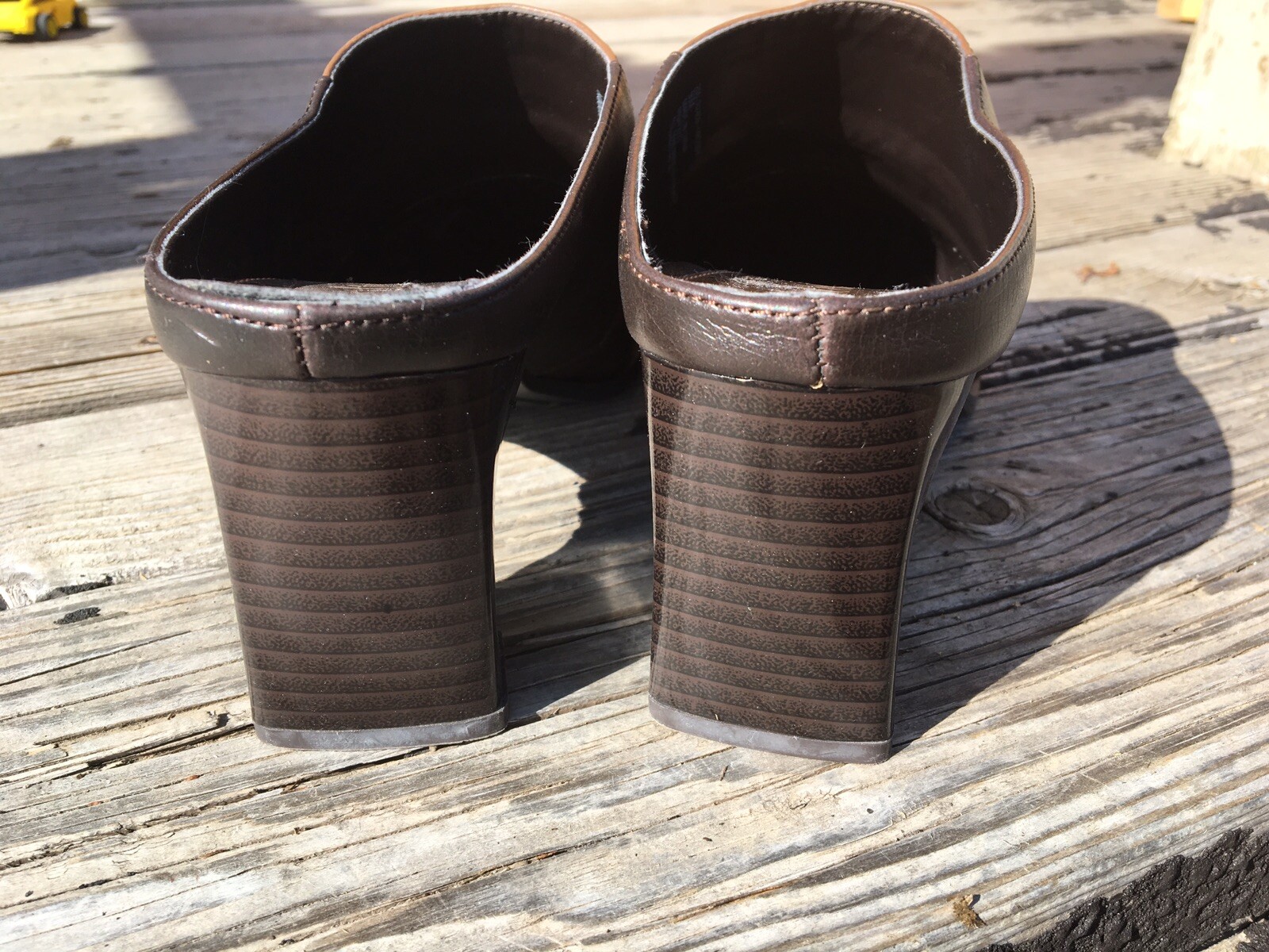 как выглядит Rialto Hoody Brown Faux Leather Slip On Shoes Heels Square Toe 9.5 M Women s фото