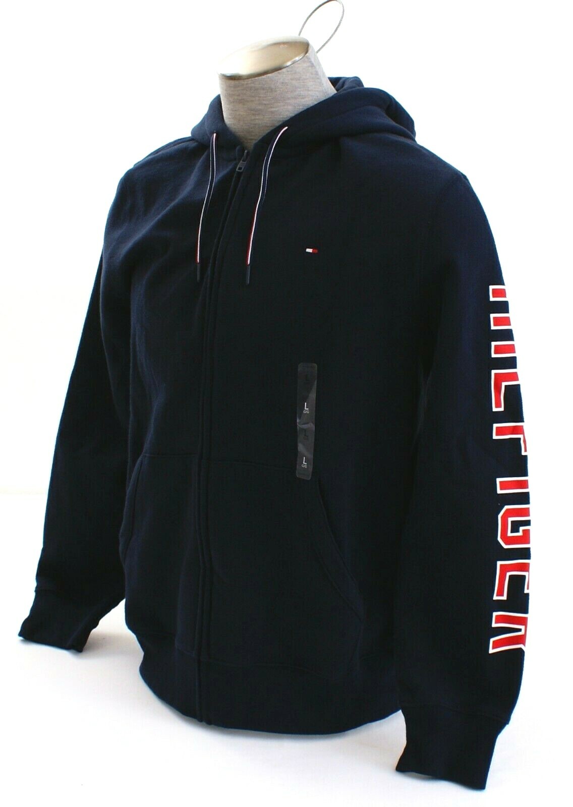 Tommy Hilfiger Signature Blue Zip Front Hooded Sweat Jacket Hoodie Men's NWT