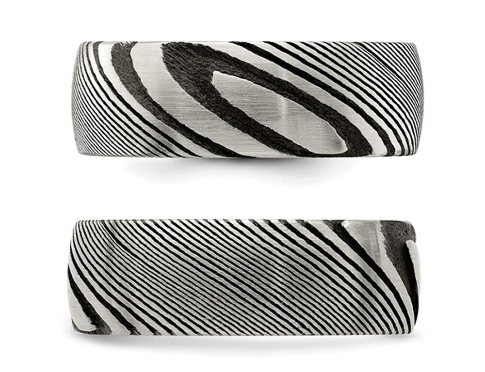как выглядит Mens Damascus Steel Polished Band Ring 8mm фото