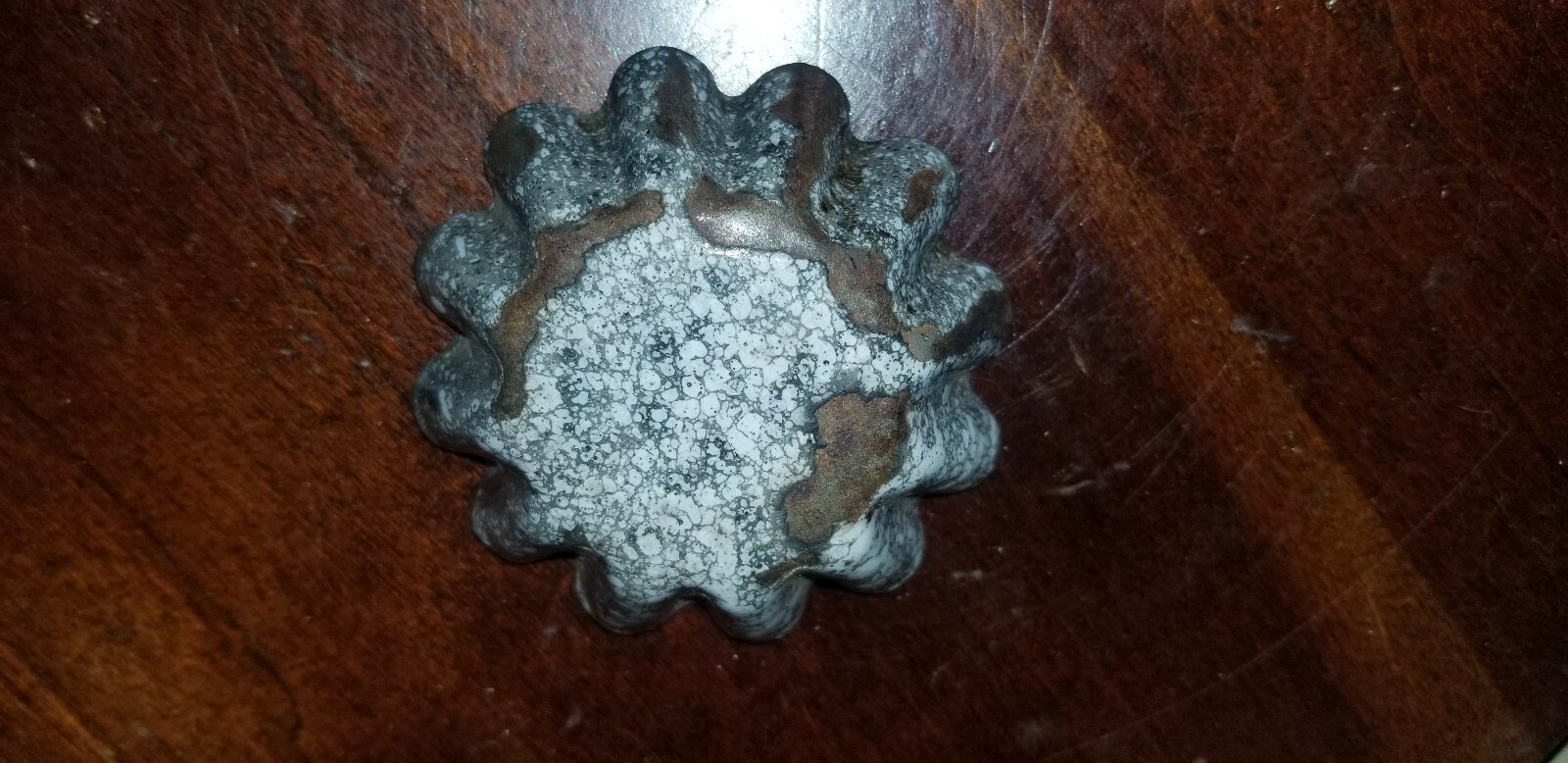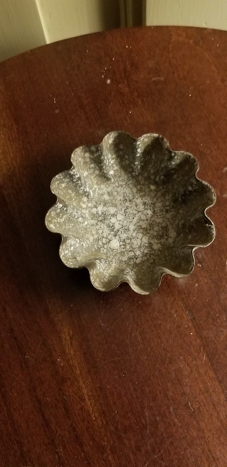 как выглядит ANTIQUE GRAY SPECKLED GRANITEWARE FLUTED PAN CHILDS DOLL TOY MINIATURE 2 5/8" фото