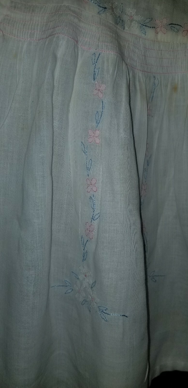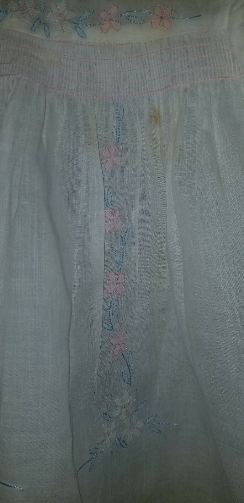 GORGEOUS VINTAGE HAND EMBROIDERED SMOCKED BABY OR DOLL DRESS pink green flowers