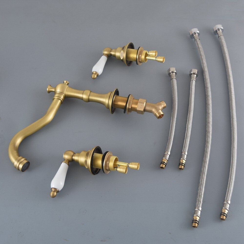 Widespread Bathroom Sink Faucet 3 Holes Two Handles Antique Brass Mixer Tap