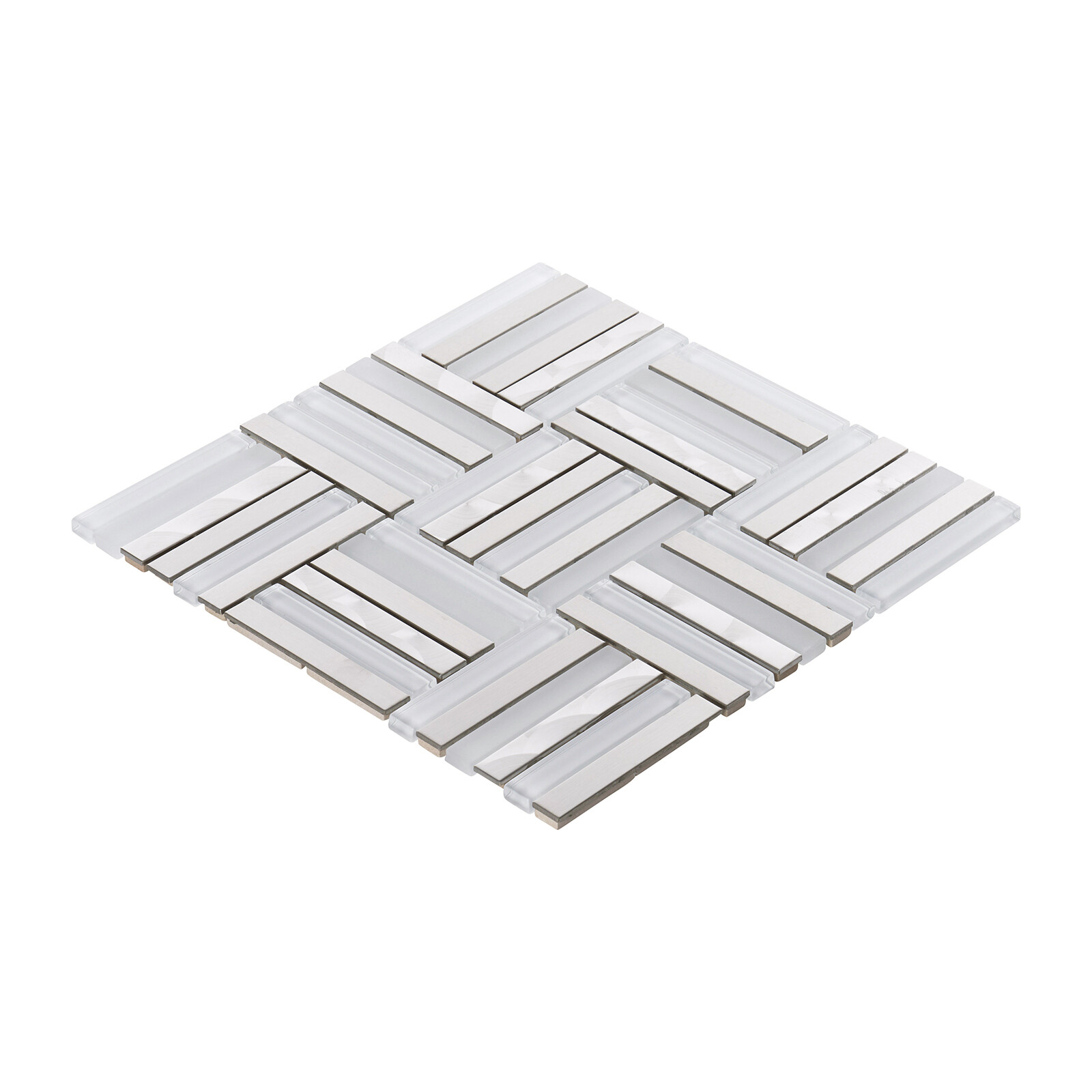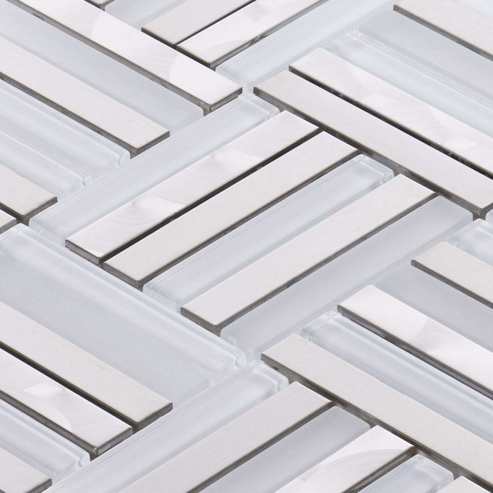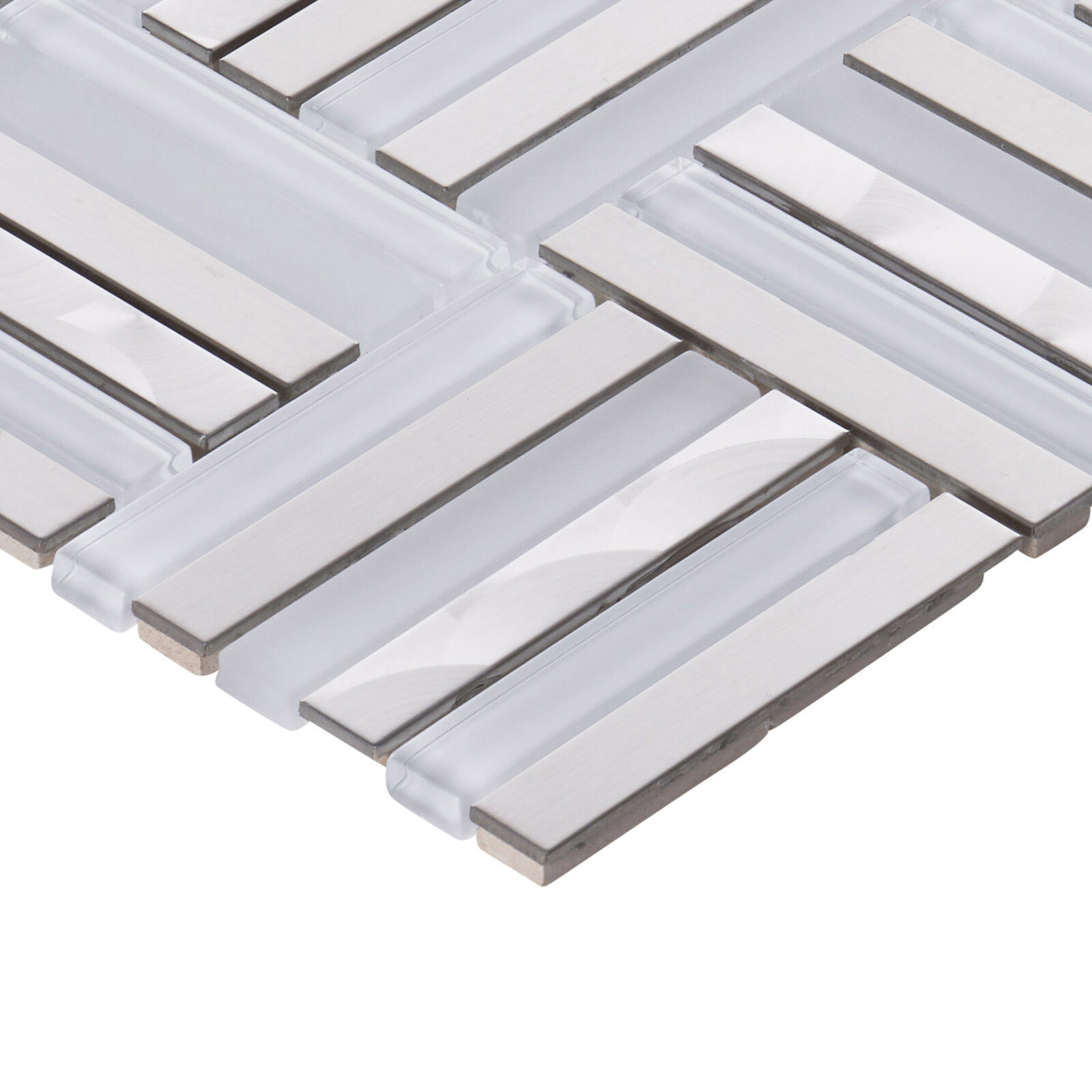 White Glass Stainless Steel Metallic Glass Parquet Mosaic Tile Wall Backsplash