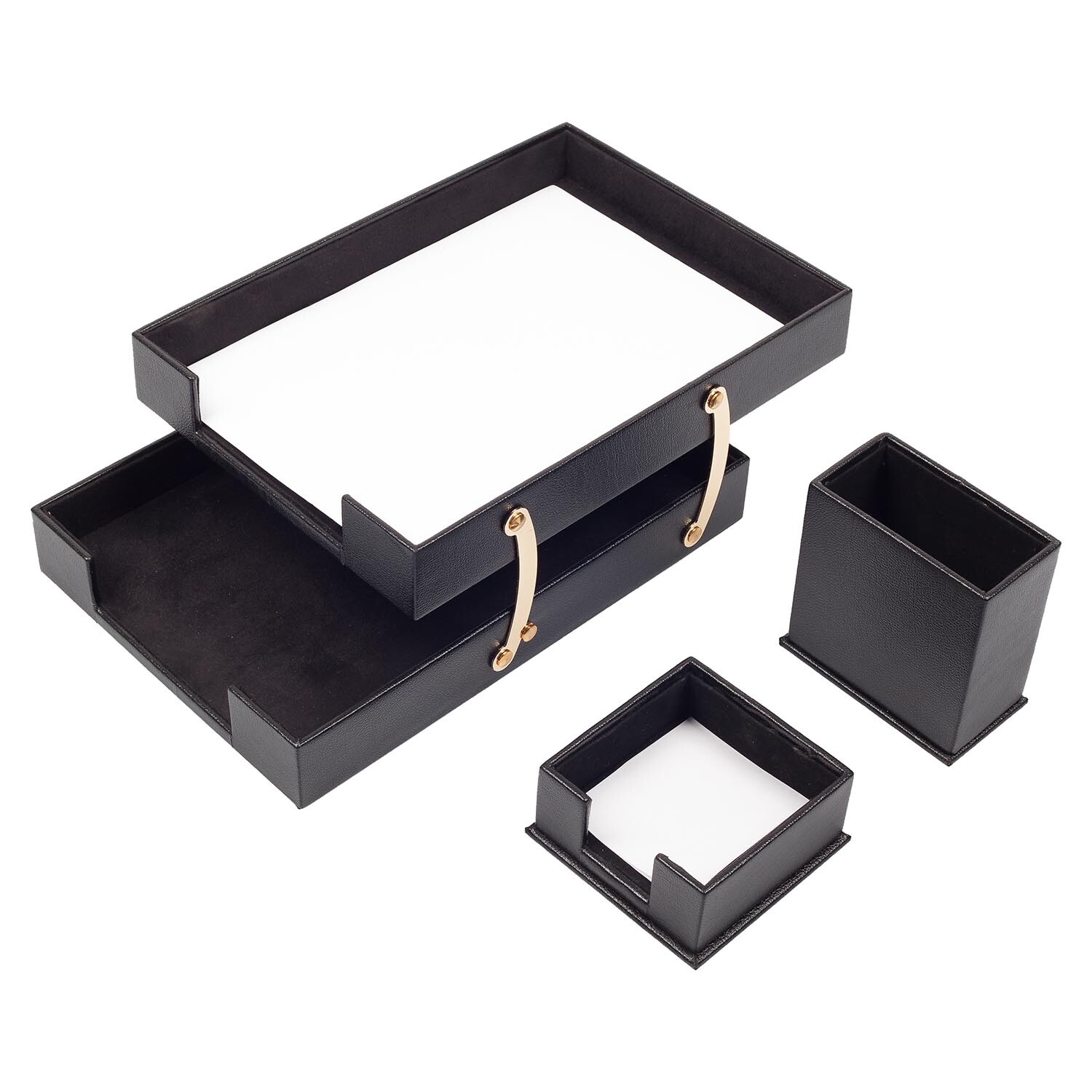 Leather Desk Set 10 Pieces with Double Document Tray Desk Organizer Black