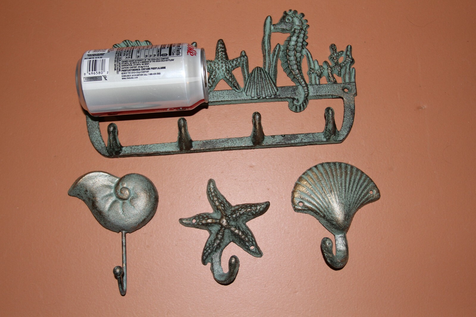 Beach House Bathroom Sea Inspried Towel Hooks Cast Iron, Beach Style - 4 pcs