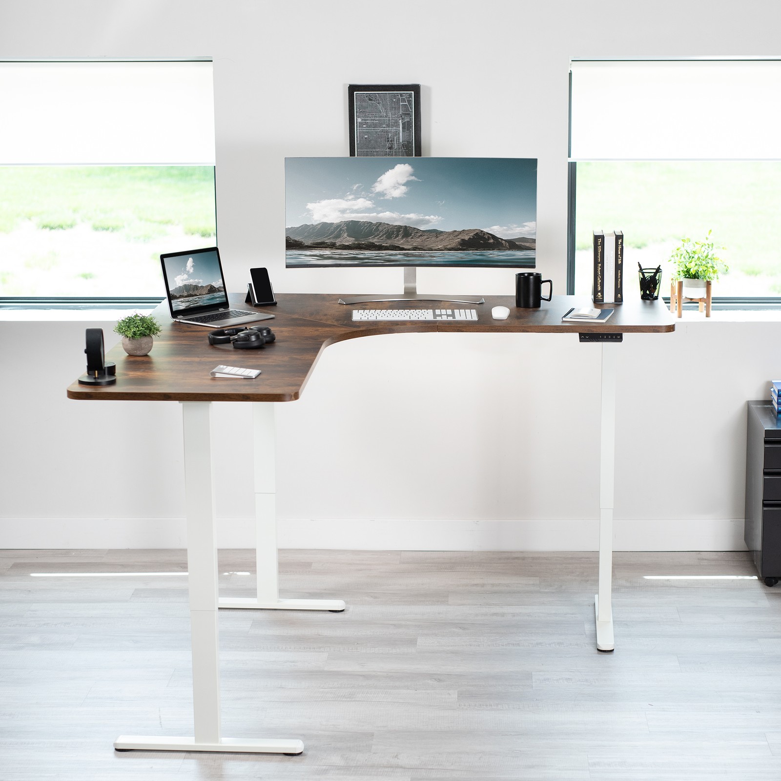 VIVO White Electric Motor Height Adjustable Corner 3 Leg Standing Desk Frame