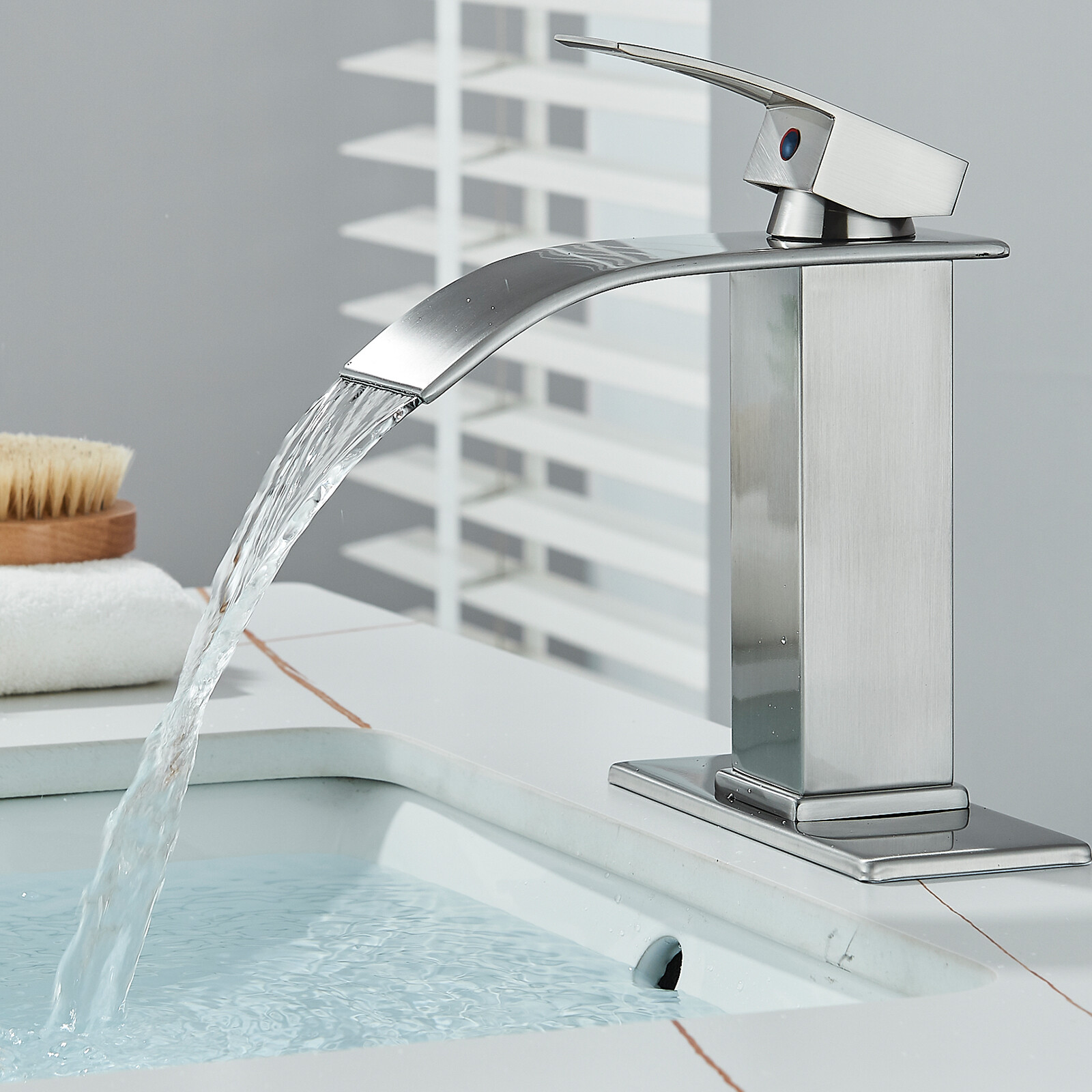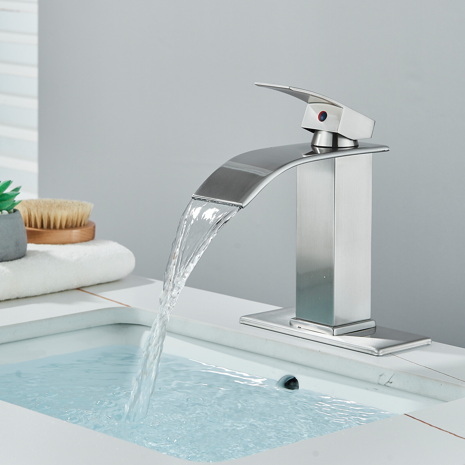 Brass Bathroom Sink Faucet Basin Vanity Waterfall Spout Single Handle Mixer Tap
