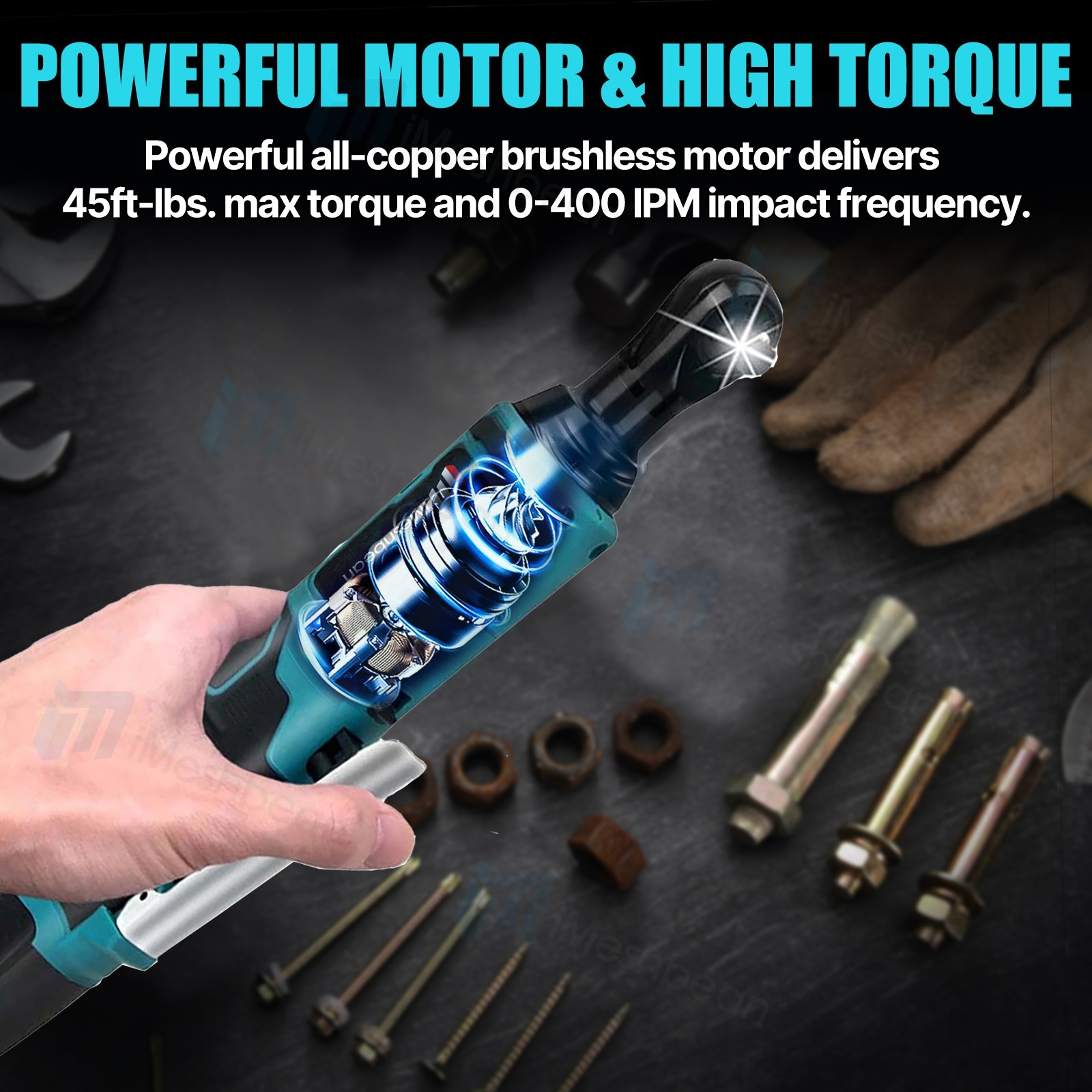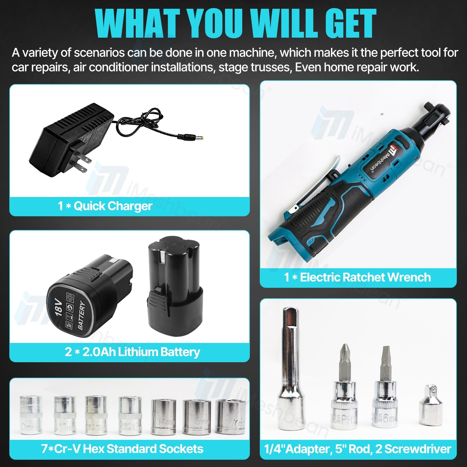 18V Volt 3/8 Cordless Electric Ratchet Wrench Kit 2 Battery Charger High Speed