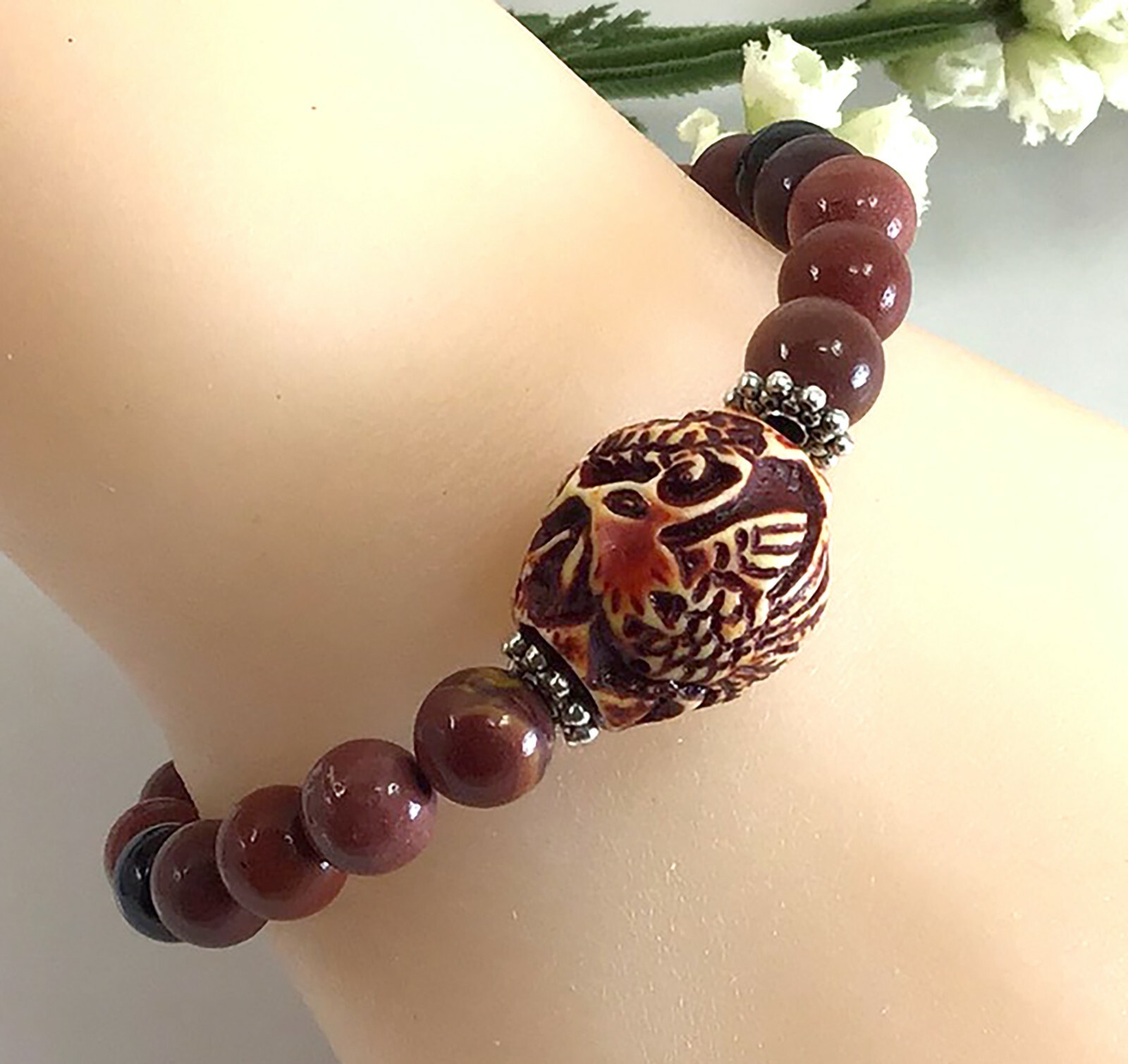 как выглядит Red jasper beaded bracelet with dragon pendant healing gemstone for men фото
