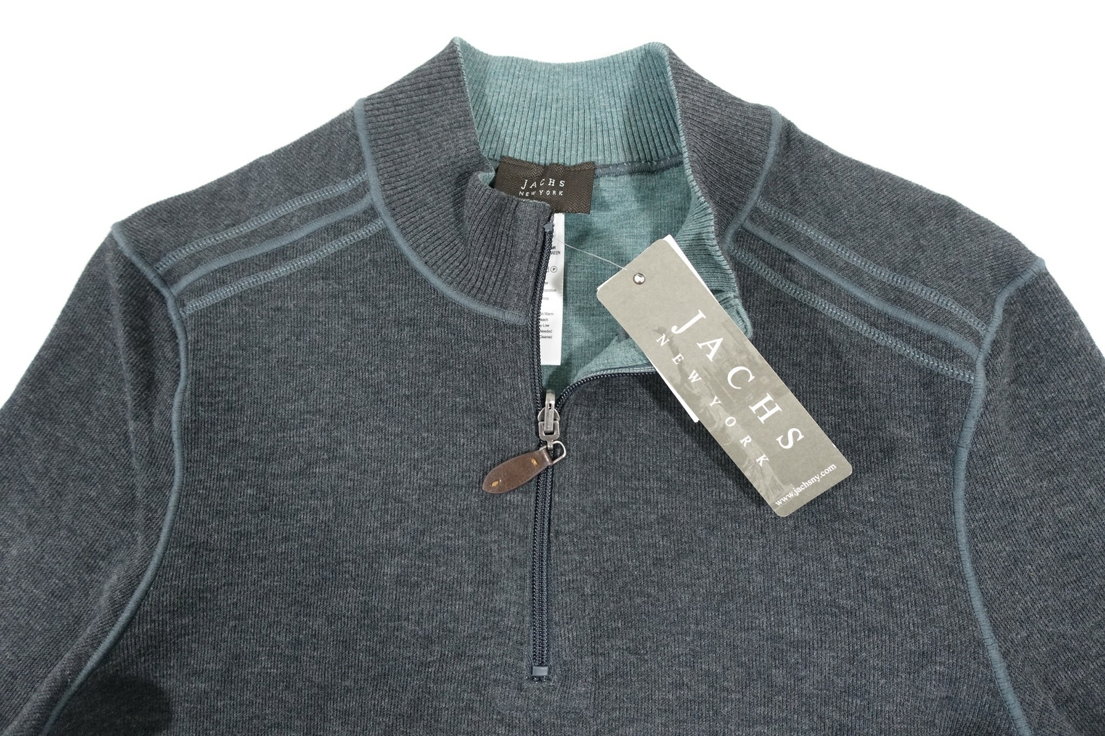 JACHS CM46-396-JM7 HALFZIP MOCK NECK REVERSIBLE MEDIUM GRAY GREEN SWEATER NWT