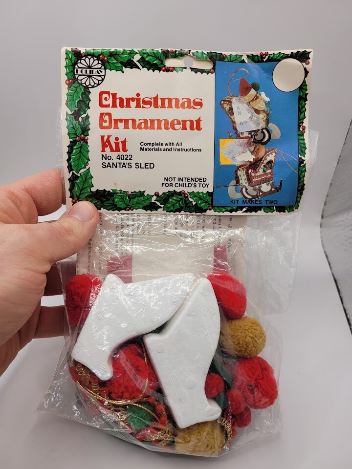 Walco Holiday Industries SANTA'S SLED Vtg Sequin Bead Christmas Ornament Kit