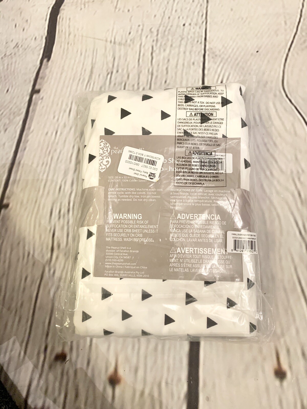 как выглядит The Peanutshell Crib Sheet Drap-hausse Black White Triangles 28inx52in NEW фото
