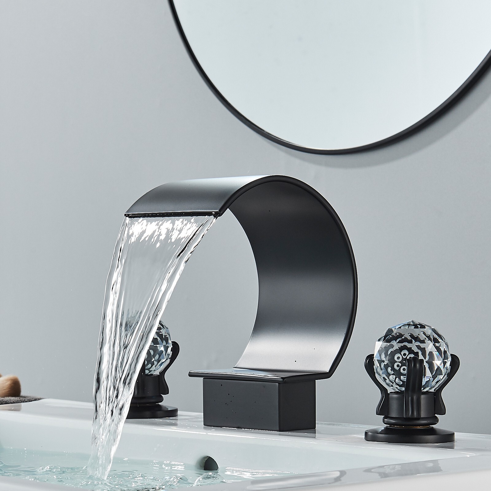 Black Waterfall Bathroom Basin Faucet 3Hole 2 Handle Sink Vanity Mixer Faucet