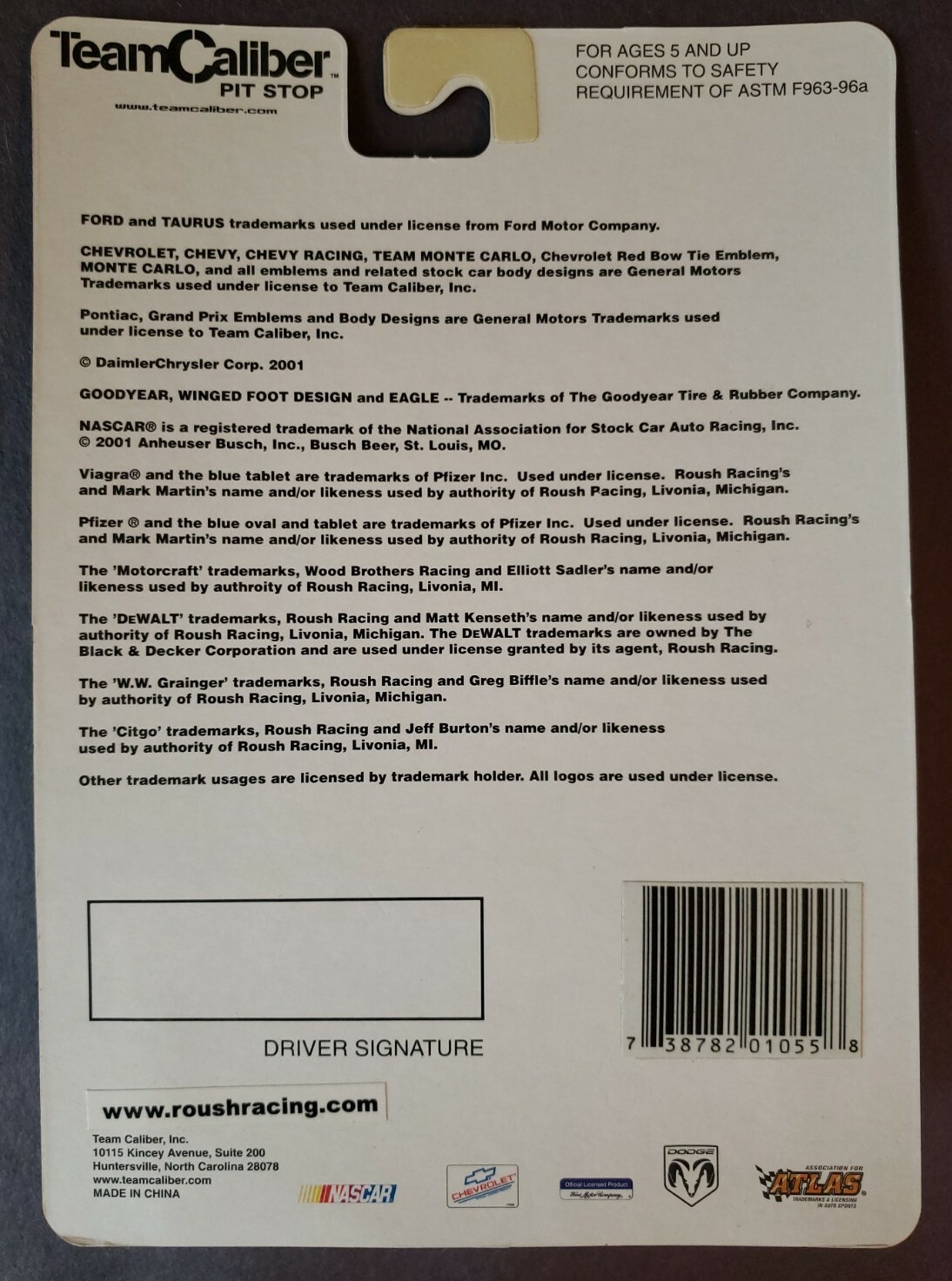MARK MARTIN 6 DIE-CAST 1/64 TEAM CALIBER 2001 ROUSH PFIZER FORD BRAND NEW