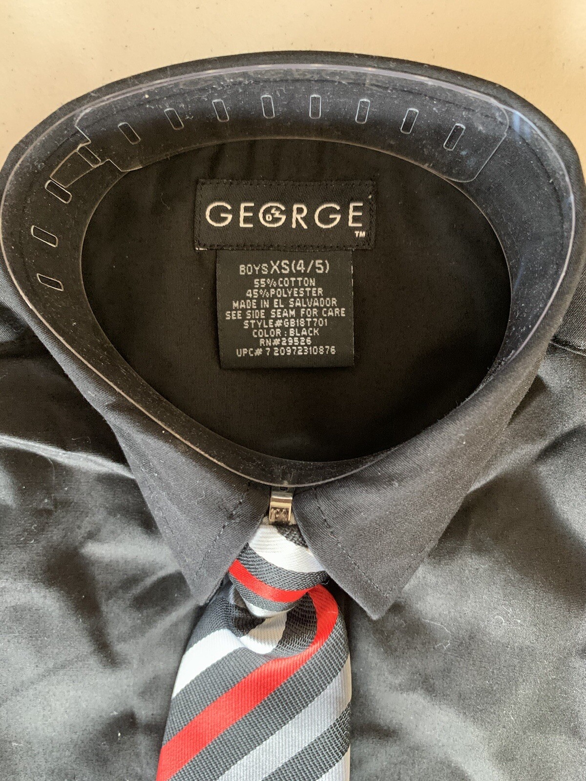 как выглядит George Black Dress Shirt Tie Boys Size XS 4/5 NEW фото